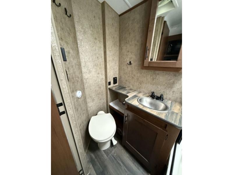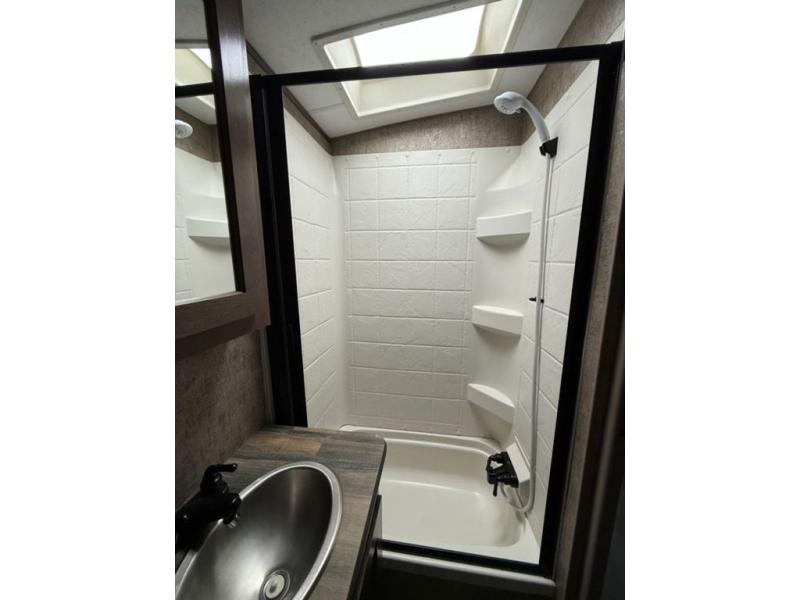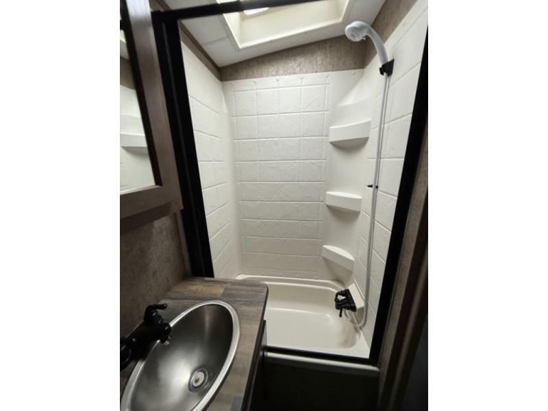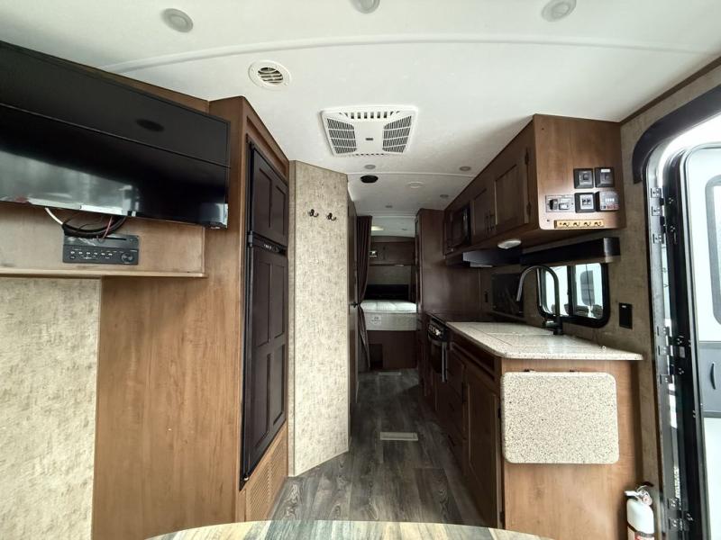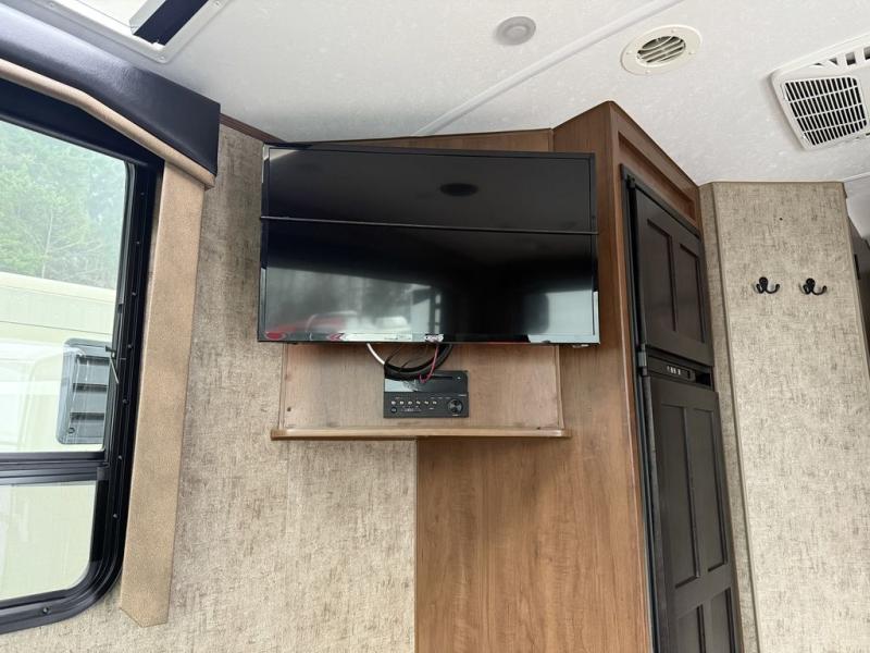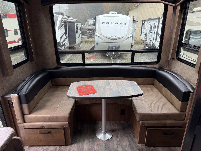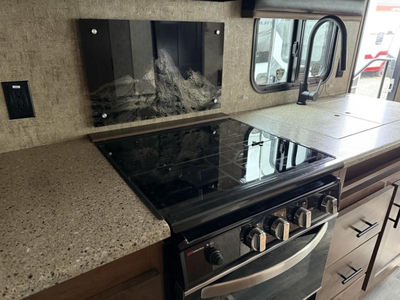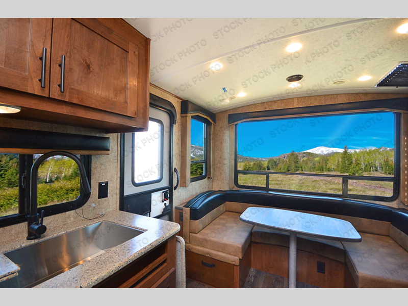 Load up your gear, clothing and food to start your journey exploring for the perfect spot to setup camp with this Back Country. You and your favorite person will love the queen bed up front with privacy curtain, plus there is storage and USB ports on each side. If you are a family, one to two kiddos can sleep on the 40" x 84" U-shaped dinette in the rear that offers beautiful views out of the windows. The kitchen offers everything to keep everyone fed including a flip-up counter for extra work space. There is a full bathroom to keep everyone clean, plus a swing-out 32" TV for inside entertainment. And don't forget about the 17' awning when you want to relax outside with some protection from the sun.