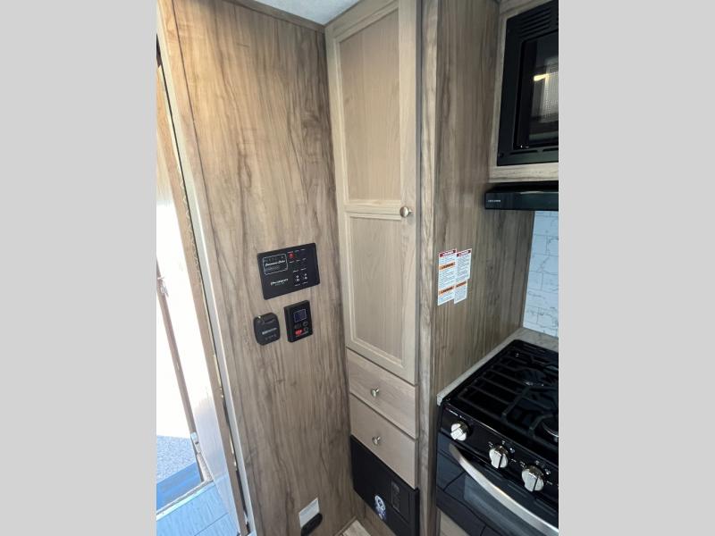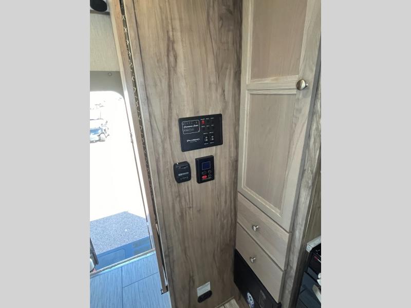 You will love all of the extra space provided in this hard side truck camper with the 42" x 62" booth dinette slide! If you're not needing the additional sleeping space provided by the dinette, choose the optional theater seating! Prepare your best meals with the three burner cooktop, store your canned goods in the wardrobe/pantry, and and leftovers in the two way 6 cu. ft. refrigerator, plus there is a microwave to pop a bag of popcorn at night. After a fun day of fishing, freshen up in the wet bath and relax on the front queen bed with a wrap around night stand, chests on either side, and entertainment center, and a closet for your clothes!