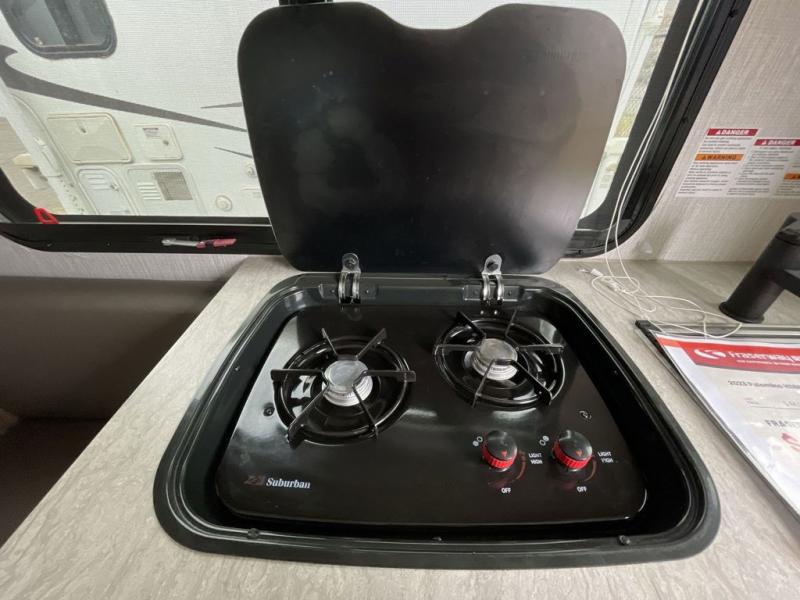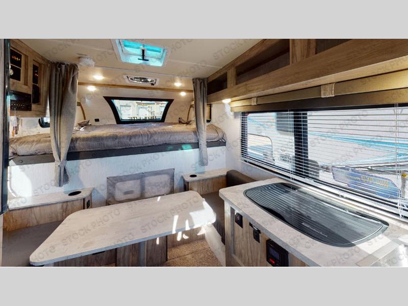 Enjoy a home on wheels with this hard side truck camper! It features a front queen bed to lay your head at night, a two burner cooktop to prepare your best meals, and a refrigerator to store any leftovers. You can enjoy your meals at the U-shaped seating area with a table then play a card game or two. There is even a closet to use as needed!