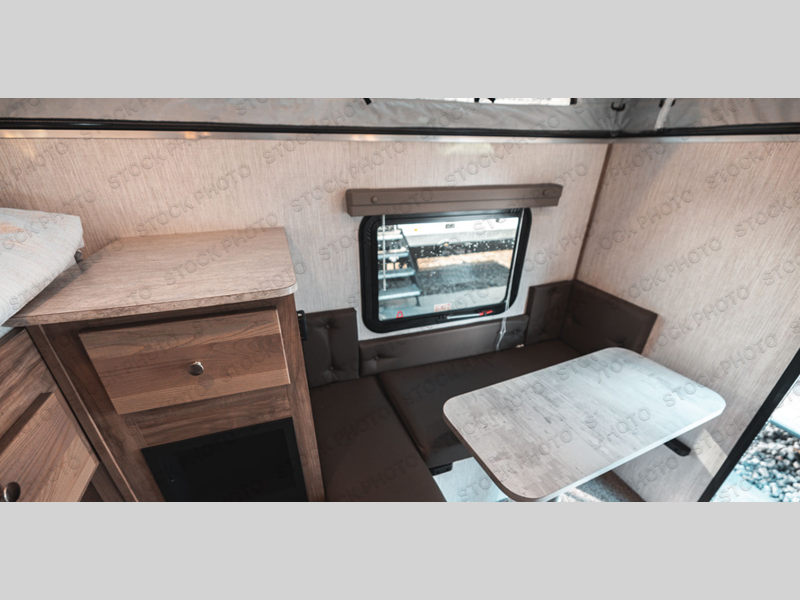 This soft side truck camper was built for 1/2 ton trucks with a 5' 6" to an 8' bed. Wake up feeling recharged after sleeping on the front queen bed with foot lockers and bedroom storage on either side of it. There is even a wardrobe below a TV top a the foot of the bed. You can prepare your best meals with the two burner cooktop, and the three way refrigerator can hold perishables. Your meals can be enjoyed at the U-shaped seating area with a table and you can transform it into an extra sleeping space for a friend to join the fun!
