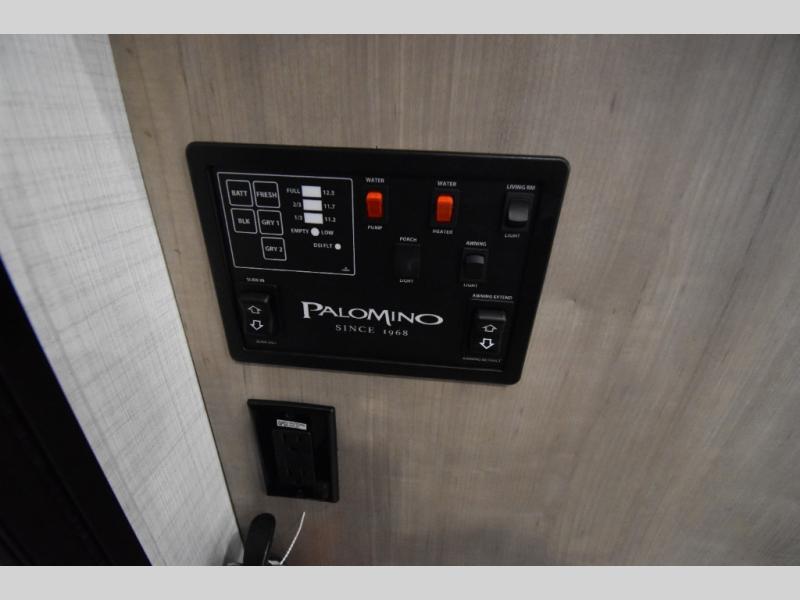 Enjoy the peace and quiet of the great outdoors with one of these Palomino PaloMini travel trailers! The light weight vacuum bonded and Azdel construction make them easier to tow and promote better fuel efficiency. You will also appreciate how easy the gel coat fiberglass exterior is to clean and maintain, and the front cap with windshield comes with Line X protectant. With LED interior lights, you can clearly see the beautiful maple hand glazed cabinets and they also use less power. In addition to the standard features, you can add optional features like the optional Off Road package which adds an extra 4" to the exterior height, has a lift kit, and 28" mudder tires so you can go off the beaten path. Come find your favorite one today!