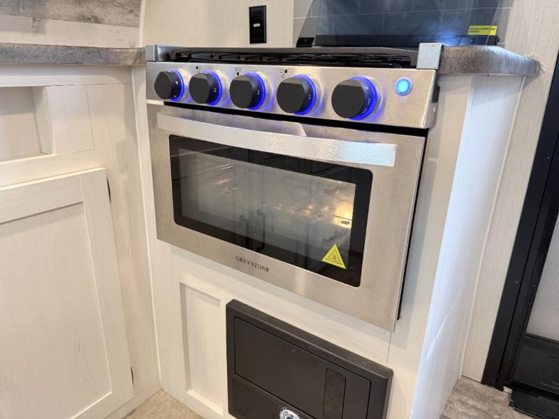Theater Seats | Fireplace | Outdoor Kitchen | Power Stabilizer Jacks | Power Tongue Jack
