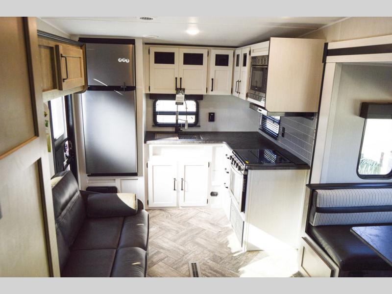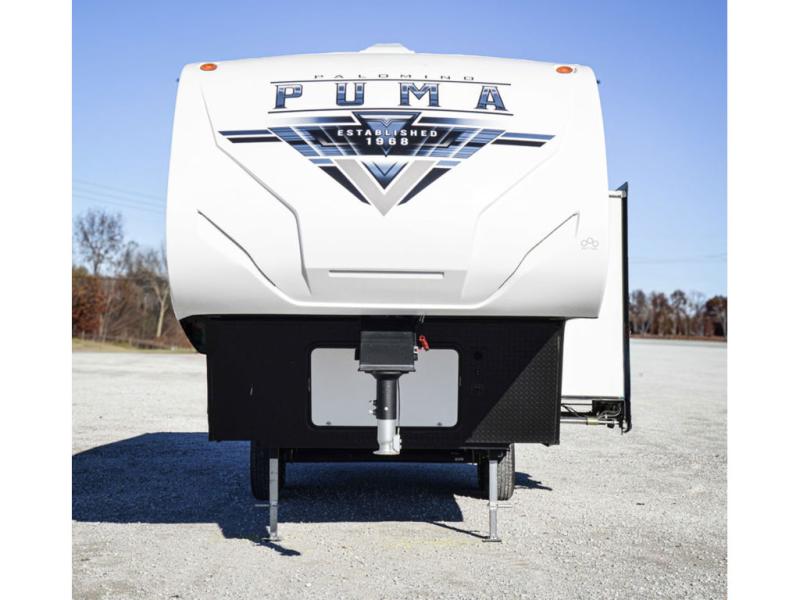 If you're looking for family-fun adventure then you need one of these Palomino Puma fifth wheels, travel trailers, or toy haulers! They are built rugged, easy to tow, and jam packed with features. The Darco wrapped underbelly will protect your units vitals through every season and the AlphaPly roofing membrane covers it. They also have super lube axles and a powder coated frame. Their luxurious interiors feature a spice rack and built-in knife rack in the kitchen, USB charging ports to keep your electronics at 100%, and high density foam mattresses for a good night's rest. The required Advantage package comes with night roller shades for privacy at night, two outside speakers to crank up the tunes while you play cornhole, and an outside shower to keep the dirt outside where it belongs, plus so much more!