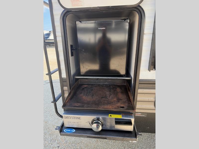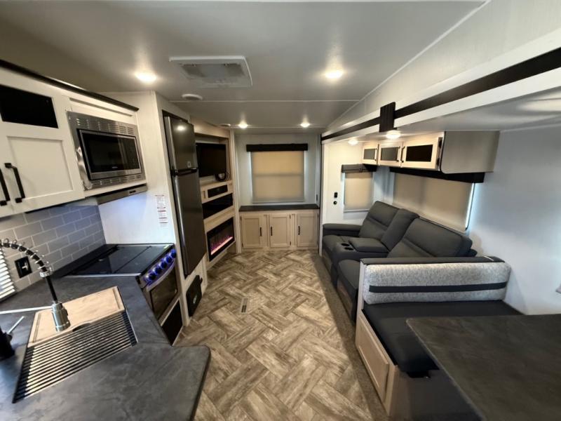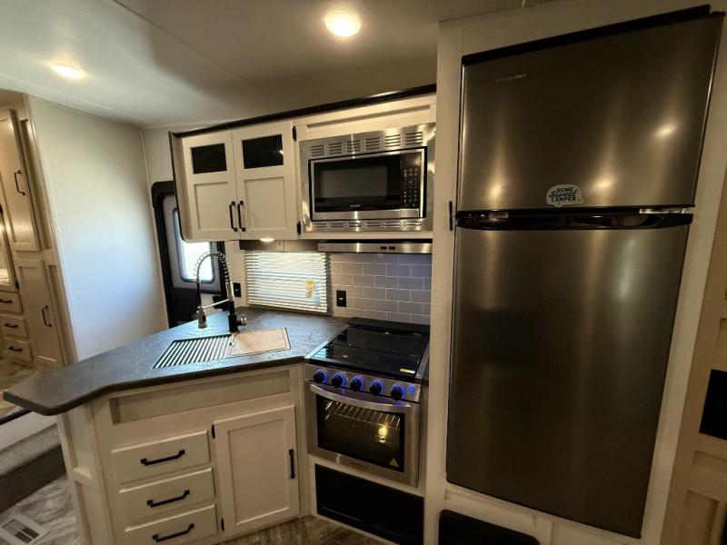 If you're looking for family-fun adventure then you need one of these Palomino Puma fifth wheels, travel trailers, or toy haulers! They are built rugged, easy to tow, and jam packed with features. The Darco wrapped underbelly will protect your units vitals through every season and the AlphaPly roofing membrane covers it. They also have super lube axles and a powder coated frame. Their luxurious interiors feature a spice rack and built-in knife rack in the kitchen, USB charging ports to keep your electronics at 100%, and high density foam mattresses for a good night's rest. The required Advantage package comes with night roller shades for privacy at night, two outside speakers to crank up the tunes while you play cornhole, and an outside shower to keep the dirt outside where it belongs, plus so much more!