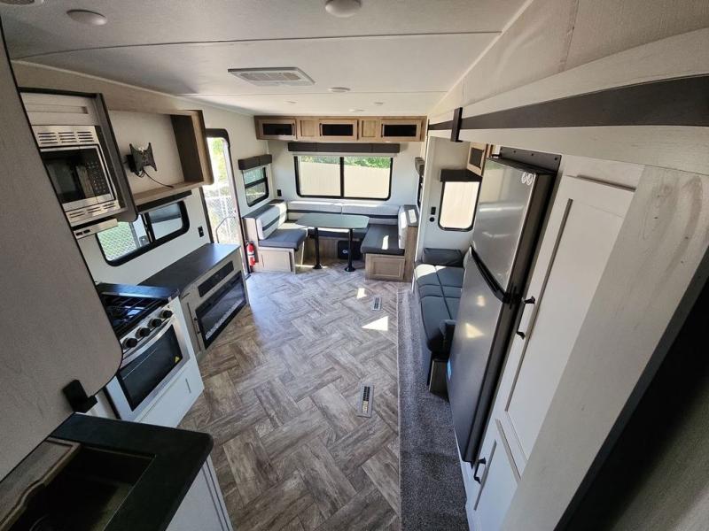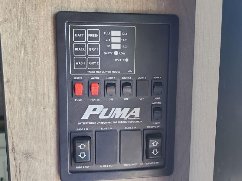 If you're looking for family-fun adventure then you need one of these Palomino Puma fifth wheels, travel trailers, or toy haulers! They are built rugged, easy to tow, and jam packed with features. The Darco wrapped underbelly will protect your units vitals through every season and the AlphaPly roofing membrane covers it. They also have super lube axles and a powder coated frame. Their luxurious interiors feature a spice rack and built-in knife rack in the kitchen, USB charging ports to keep your electronics at 100%, and high density foam mattresses for a good night's rest. The required Advantage package comes with night roller shades for privacy at night, two outside speakers to crank up the tunes while you play cornhole, and an outside shower to keep the dirt outside where it belongs, plus so much more!