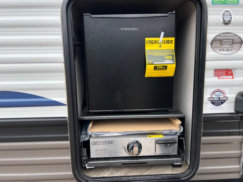 If you're looking for family-fun adventure then you need one of these Palomino Puma fifth wheels, travel trailers, or toy haulers! They are built rugged, easy to tow, and jam packed with features. The Darco wrapped underbelly will protect your units vitals through every season and the AlphaPly roofing membrane covers it. They also have super lube axles and a powder coated frame. Their luxurious interiors feature a spice rack and built-in knife rack in the kitchen, USB charging ports to keep your electronics at 100%, and high density foam mattresses for a good night's rest. The required Advantage package comes with night roller shades for privacy at night, two outside speakers to crank up the tunes while you play cornhole, and an outside shower to keep the dirt outside where it belongs, plus so much more!