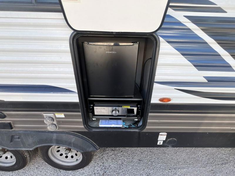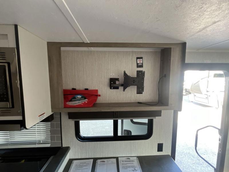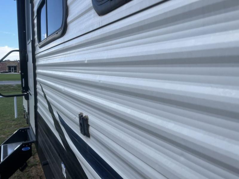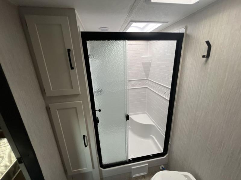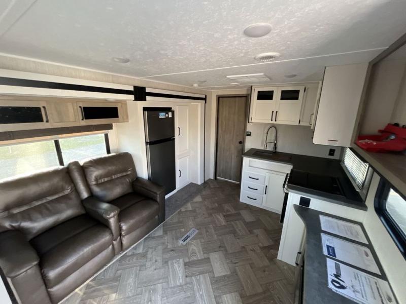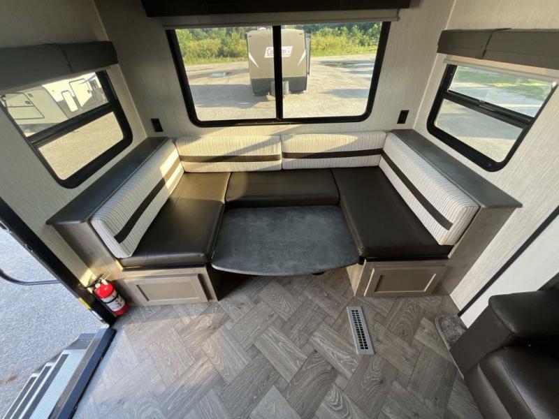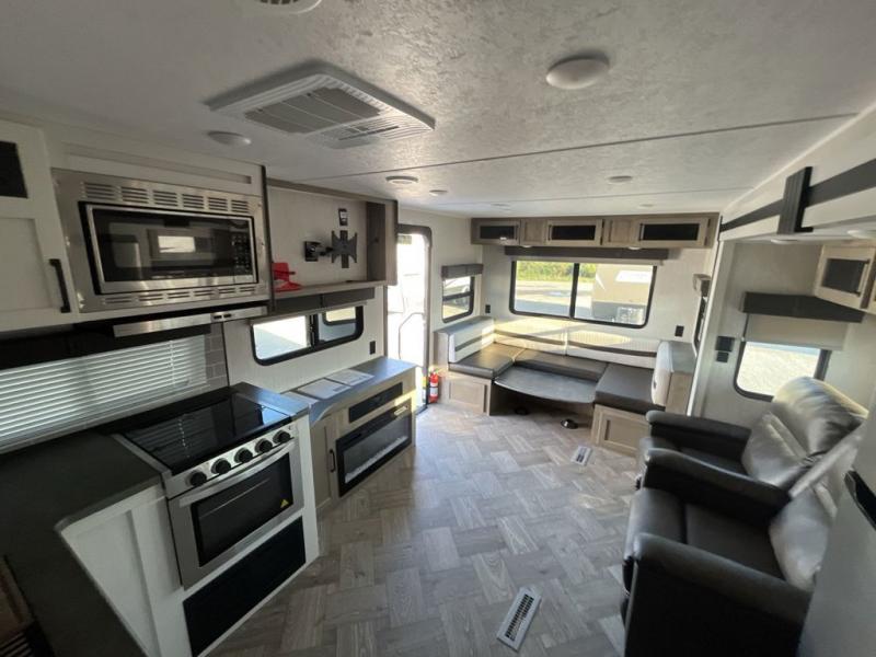 You won't believe all that this travel trailer has to offer! From the rear U-shaped dinette that is great for eating meals, playing games, and even transforming into extra sleeping spaces to the dual entry doors that will create a smooth flow of traffic in and out of the unit. The chef can prepare their best meals on the three burner cooktop or use the convenient microwave when you're on the go. The walk-through bathroom is easy for everyone to access, especially those staying in the front bedroom, and has a 32" x 40" shower with a seat to freshen up in each morning!