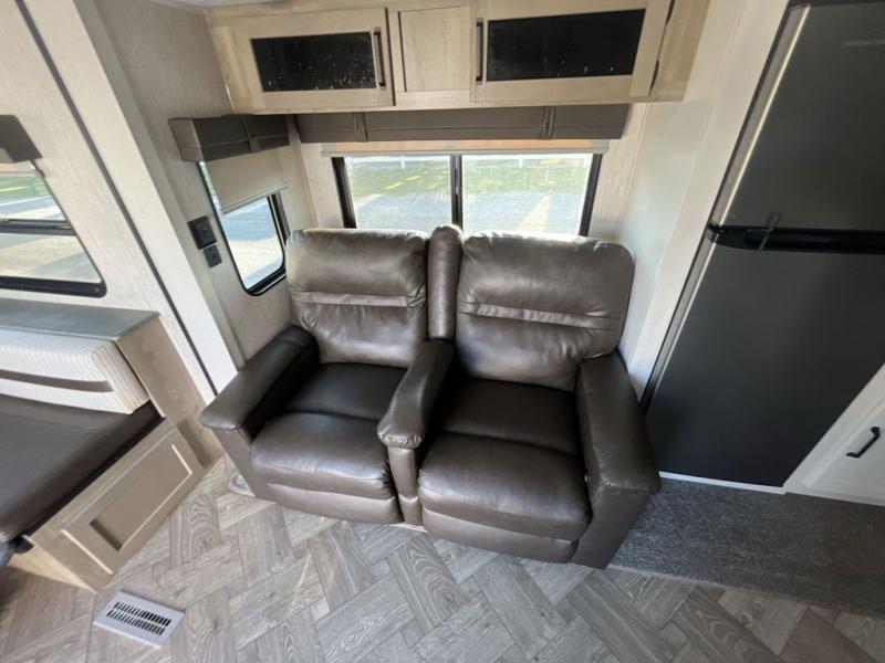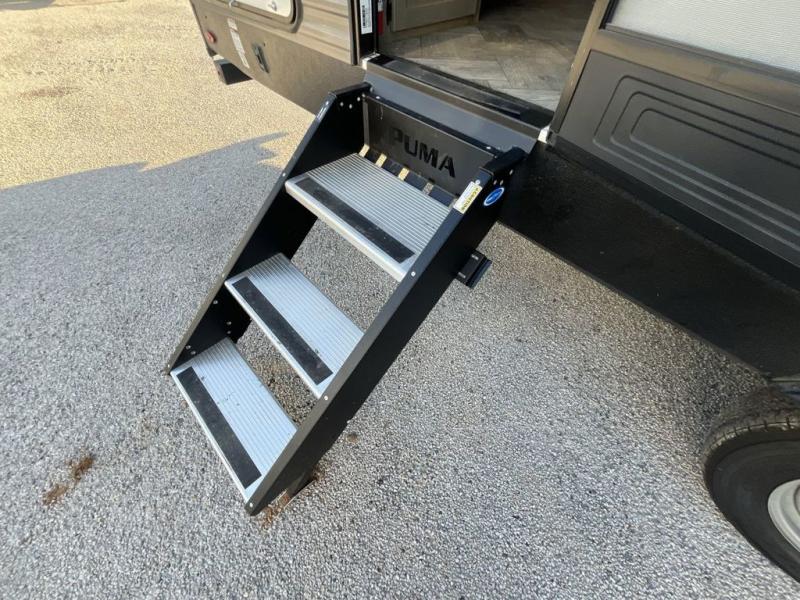 If you're looking for family-fun adventure then you need one of these Palomino Puma fifth wheels, travel trailers, or toy haulers! They are built rugged, easy to tow, and jam packed with features. The Darco wrapped underbelly will protect your units vitals through every season and the AlphaPly roofing membrane covers it. They also have super lube axles and a powder coated frame. Their luxurious interiors feature a spice rack and built-in knife rack in the kitchen, USB charging ports to keep your electronics at 100%, and high density foam mattresses for a good night's rest. The required Advantage package comes with night roller shades for privacy at night, two outside speakers to crank up the tunes while you play cornhole, and an outside shower to keep the dirt outside where it belongs, plus so much more!