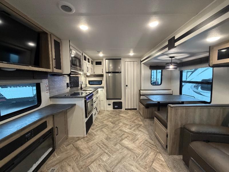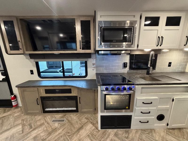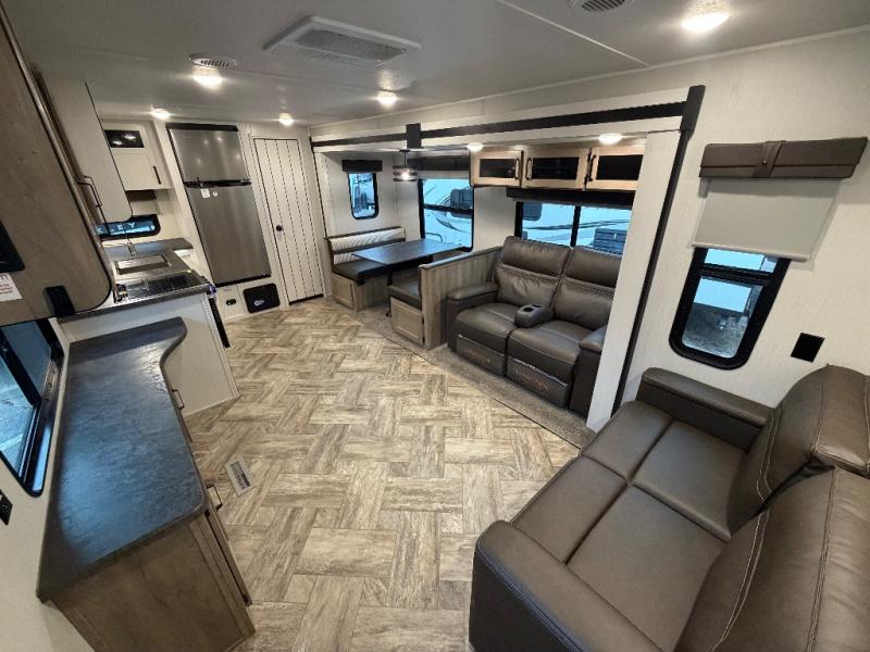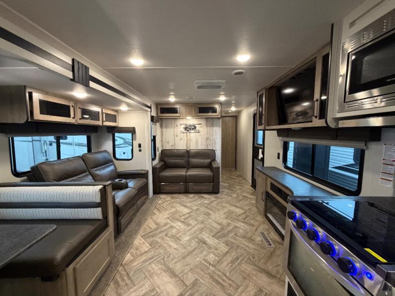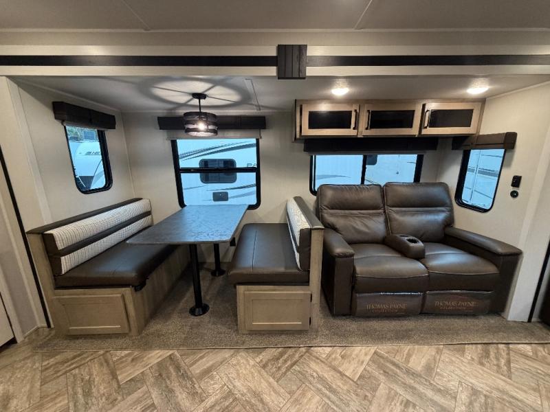 The Palomino Puma 30RKQS delivers a spacious rear kitchen, dual recliners, and a feature-rich layout designed for couples or small families seeking comfort and convenience. With a generous walk-in pantry, queen bed slide, and durable construction, it’s a fantastic option for extended weekends or full-season camping.