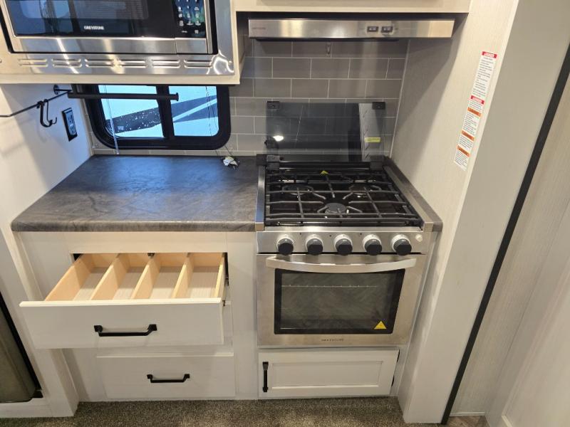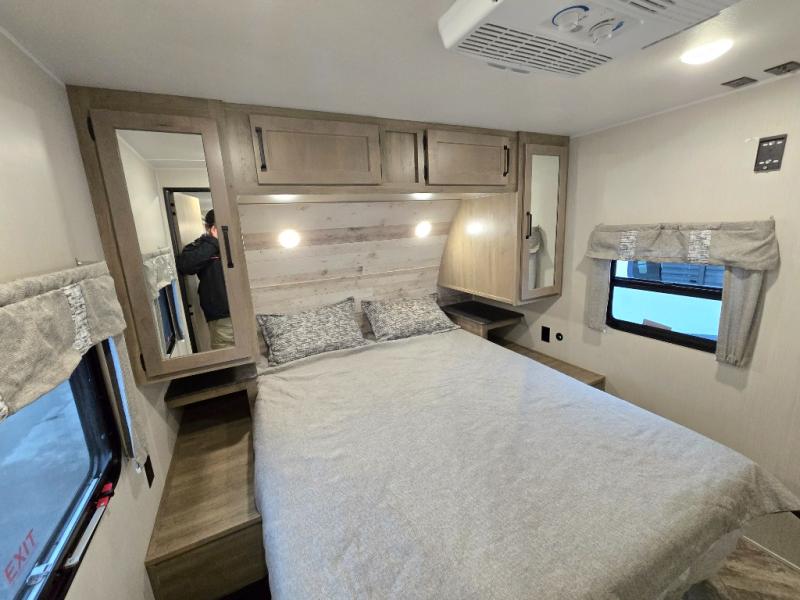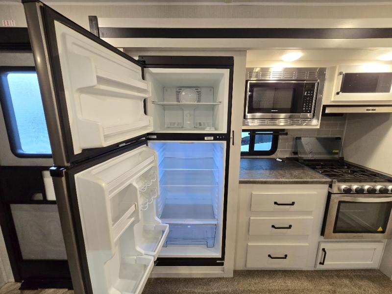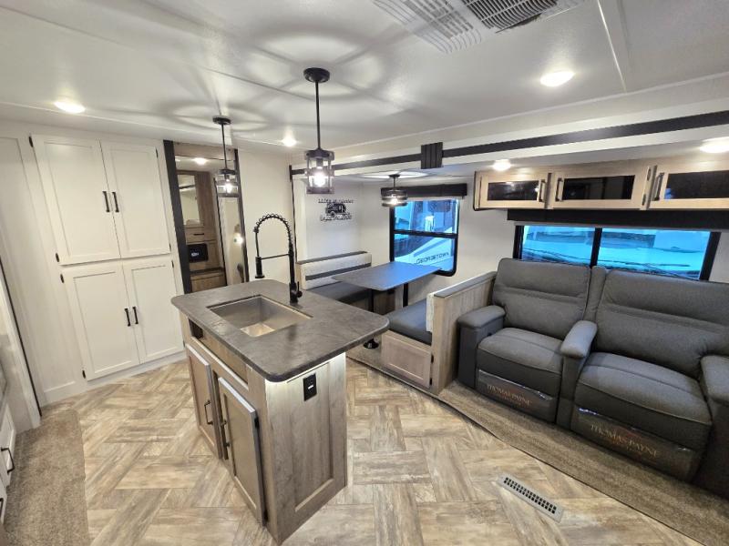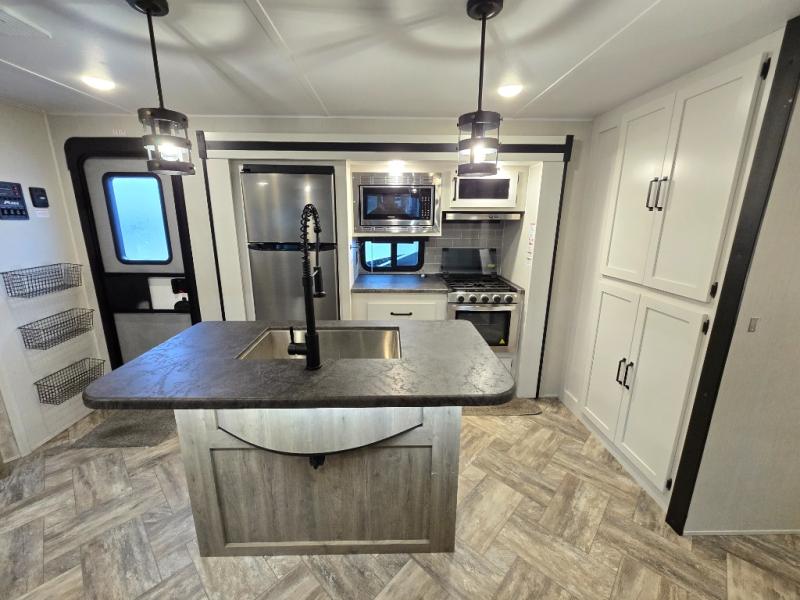 If you're looking for family-fun adventure then you need one of these Palomino Puma fifth wheels, travel trailers, or toy haulers! They are built rugged, easy to tow, and jam packed with features. The Darco wrapped underbelly will protect your units vitals through every season and the AlphaPly roofing membrane covers it. They also have super lube axles and a powder coated frame. Their luxurious interiors feature a spice rack and built-in knife rack in the kitchen, USB charging ports to keep your electronics at 100%, and high density foam mattresses for a good night's rest. The required Advantage package comes with night roller shades for privacy at night, two outside speakers to crank up the tunes while you play cornhole, and an outside shower to keep the dirt outside where it belongs, plus so much more!