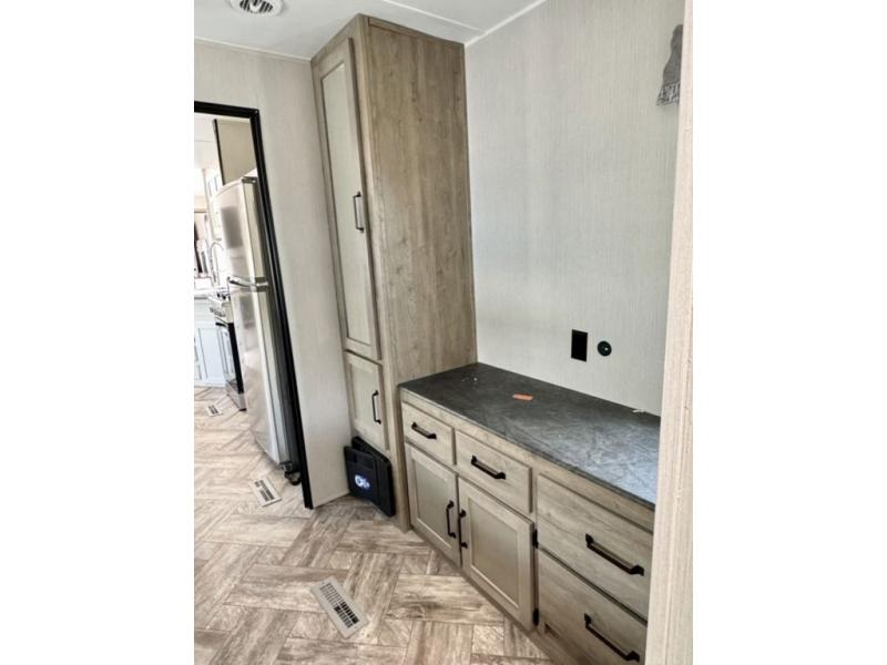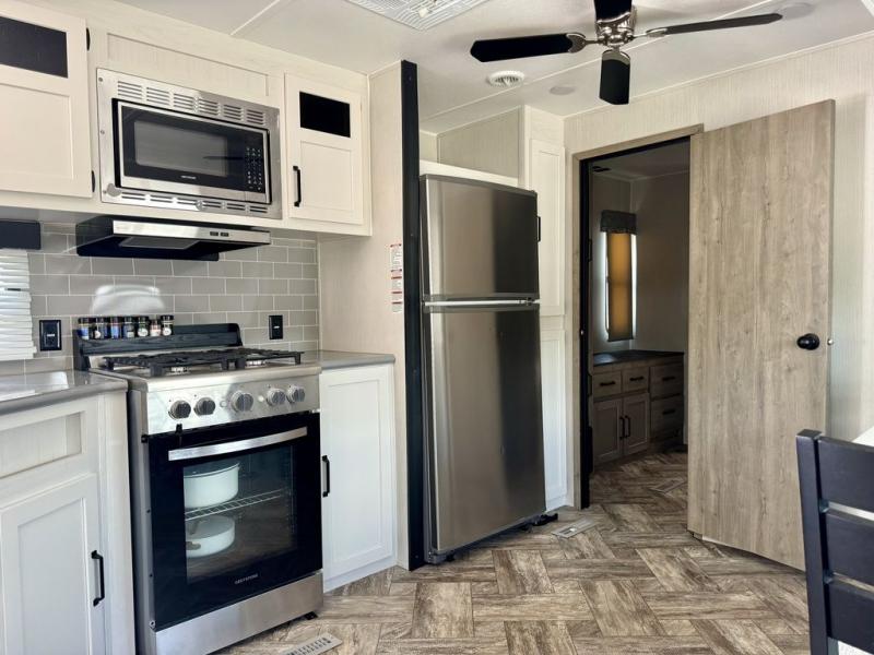 Get out of town and start enjoying the beautiful weather and scenery where you have chosen to place this Puma Destination. This spacious trailer has three slide outs for lots of interior floor space, plus two entries for convenience. The front bedroom offers a king bed slide, two closets, and a dresser. The rear bedroom suite includes a full bathroom and a queen bed slide, a vanity and a wardrobe. In between you can relax in the combined living and kitchen area on the sofa or booth dinette while visiting with the cook with full amenities.
