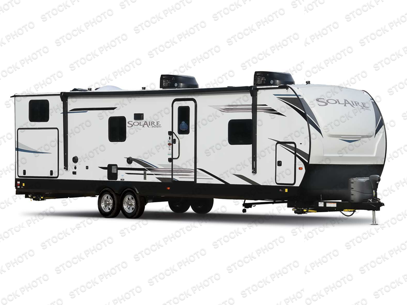 Each SolAire travel trailer or hybrid expandable features a 2/3 front fiberglass cap, a white hi-gloss exterior, and Dexter Tor-Flex torsion axles for smooth towing. You will love having a power tongue jack for easy set up, plus slam latch baggage doors with magnets to make unloading easier than ever. There is also a tire pressure monitoring system, a power awning with LED lights, and aluminum wheels included on the exterior. Head inside to find solid surface countertops, roller shades, a Furrion HDMI DVD/Bluetooth/HDMI stereo, and USB ports to keep your electronics charged.