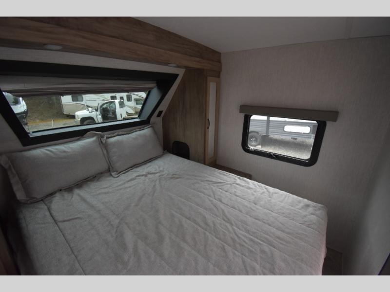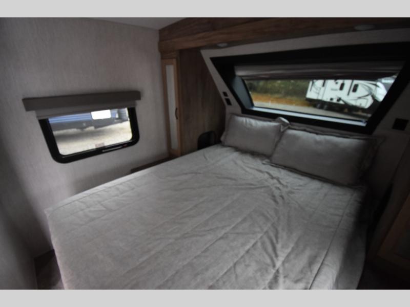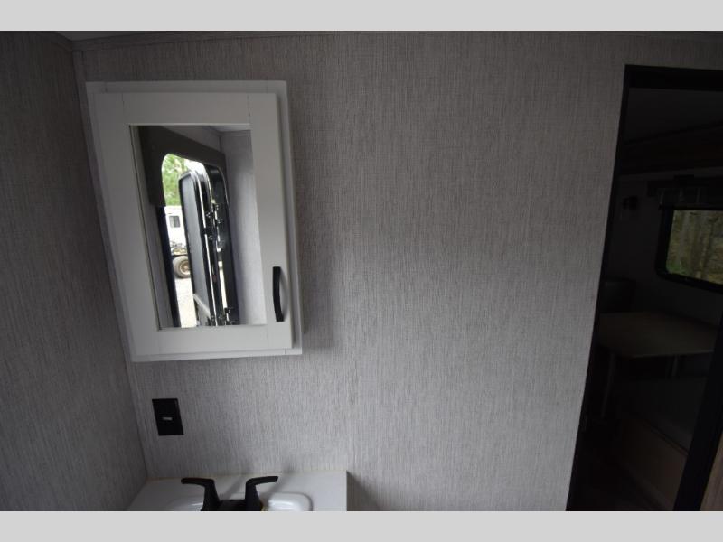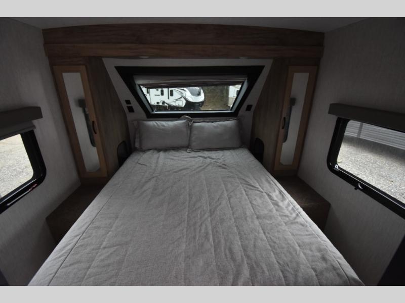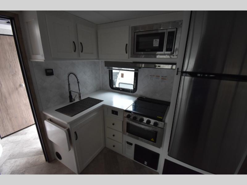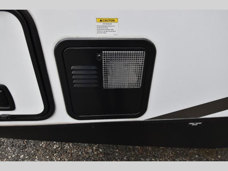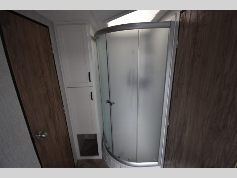 Whether you are looking for a private bunkhouse, a private bedroom, or dual entry in your next RV, this one might just be the perfect fit with all those features! The bunkhouse includes 54" x 74" bunk beds, a wardrobe and a sliding door for privacy, while the front bedroom offers a queen bed with dual wardrobes. The walk-through bathroom is super convenient, plus includes the second entry/exit door to the trailer so you can quickly get inside and back outside to the fun. The galley kitchen offers amenities such as a microwave, a glass top flush mount range, an 11 cu. ft. refrigerator, and an L-shaped counter for preparing and serving meals. You will also find more storage, an entertainment center and a slide out sofa sleeper and booth dinette that offer more sleeping space when needed.