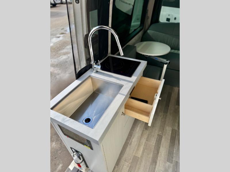 Whether you are ready to head out on a weekend camping trip or you are going to your kids' sporting events, this Ascent Class B diesel motorhome has the ideal accommodations for you. The rear power sofa with seat belts easily convert into twin beds or a 70" x 72" queen-size bed, plus the Lagun table mount system turns 360 degrees to allow you to position it just right. The wet bath is enclosed for your privacy, plus you will appreciate the handheld showerhead for easy clean-up. When you are ready to relax for a bit, sit and watch a show on the 24" Smart LED TV, or if you want to spend more time outdoors, enjoy the shade from the power awning!