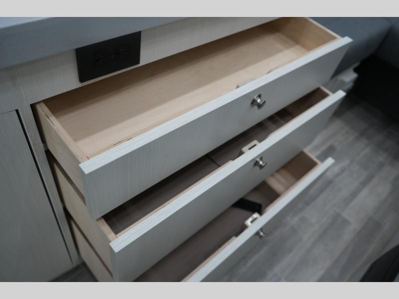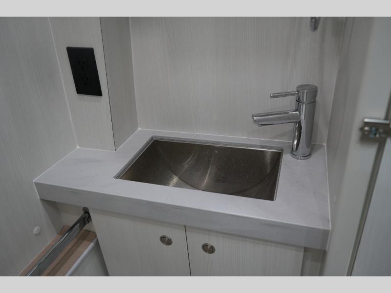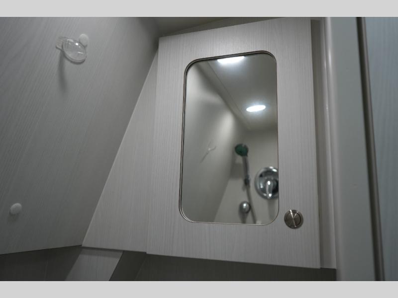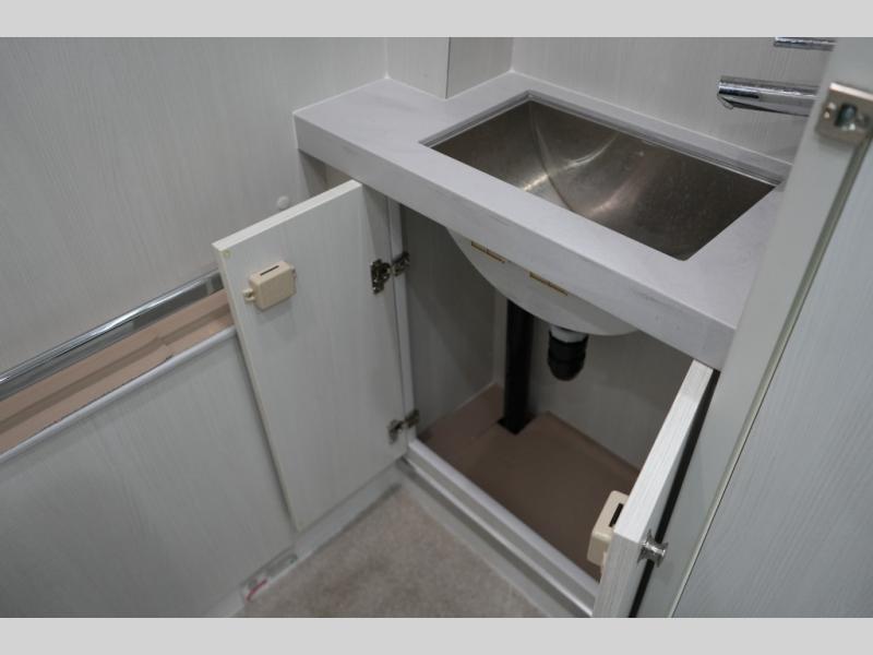Step inside and experience 78 inches of headroom, an open, airy feel, and an interior thoughtfully designed for both relaxation and function. The rear power sofa converts into a 68" x 76" queen-size bed with plush memory foam cushions for restful sleep, while the wet bath with vanity, Corian countertop, sink, and extra storage keeps daily routines convenient on the road.