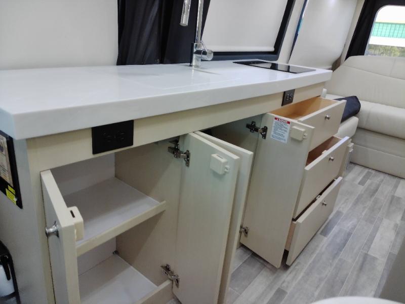 These Pleasure-Way Plateau Class B diesel motorhomes have been designed with comfort and convenience to accommodate a wide range of lifestyles! They are powered by a Mercedes Benz Sprinter 3500 van chassis with high-performing, fast-charging, and maintenance-free Eco-Ion Earth Smart dual 100Ah lithium batteries. The new 10 inch touchscreen control panel allows you to adjust the climate, manage battery usage, monitor the solar panel charge volts, and set, start, or stop the automatic generator. Another feature is the Truma AquaGo Comfort Plus water heater that features a 60,000 BTU stepless burner, a recirculating water line, and a mixing vessel to deliver hot water on demand without temperature spikes. Come see what all the fuss is about today!