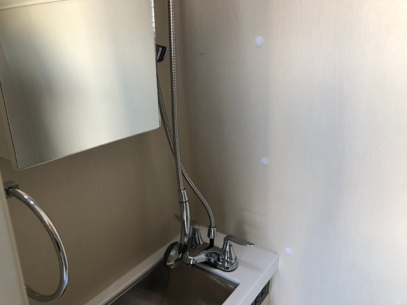 You will experience a comfortable ride in this Plateau Class B diesel motorhome with memory foam sofa cushions. The wet bath comes fully equipped with a medicine cabinet including a mirror, a Corian countertop, a towel rack, and a handheld showerhead. The exterior shower also has a handheld showerhead to make rinsing off the evidence of a fun-filled day even easier before heading inside. All of the seating throughout is covered in Ultraleather fabric, including the swiveling captain's chairs. With a generous amount of available storage in a full-size wardrobe, you can easily reach any of your hang-up clothes!