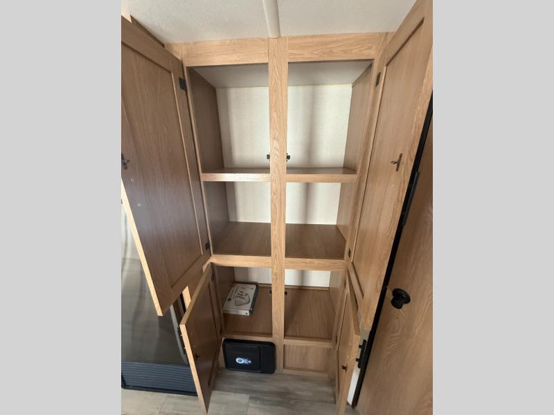 What I liked most: Larger front exterior storage the most. Master bedroom privacy pocket doors have sturdy latches and extra protection from bumping into each other. Kitchen area has plenty of storage and a very nice large pantry.