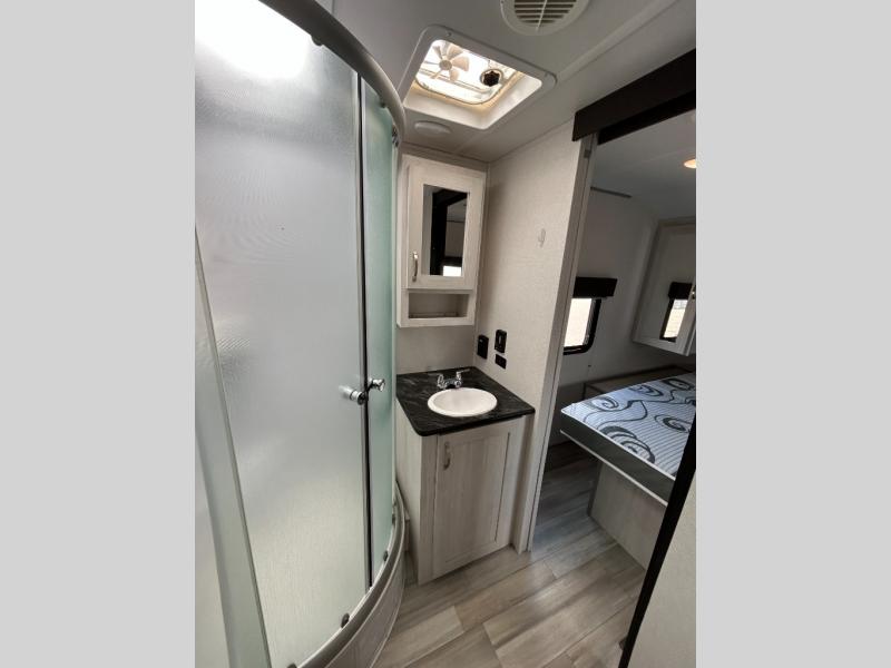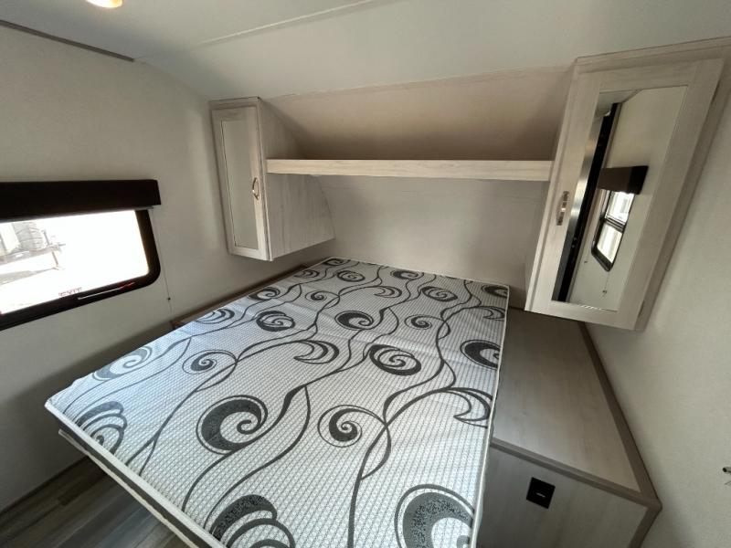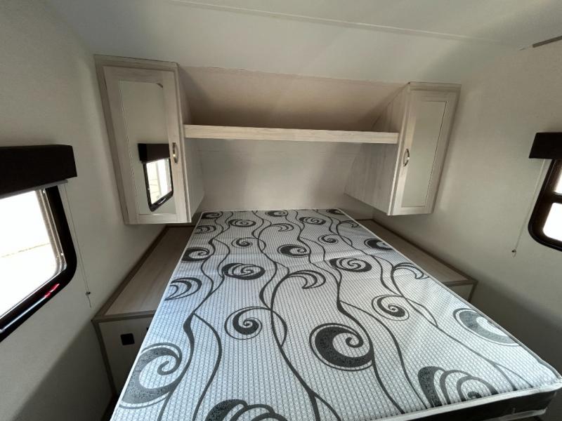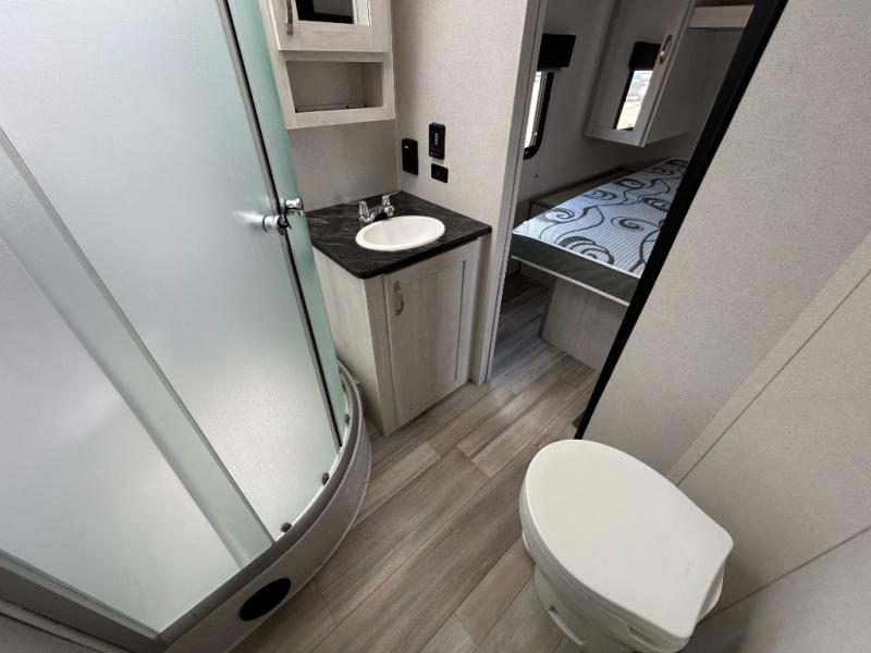 With any Tracer travel trailer by Prime Time RV, you will enjoy a lightweight, easy to tow RV for all your outdoor adventures. Each one is constructed with Eternabond construction that includes laminated aluminum framed walls, floor, and roof for ultra durability. You will be able to extend your camping season thanks to the heated and enclosed underbelly, the 30K BTU furnace, and the insulated and foam block fiberglass insulation. The Tracer travel trailers are packed with exterior conveniences to make each trip hassle-free, like the power tongue jack and electric stabilizer jacks, the Doggy D-ring pet securement, the universal docking center, and so much more. Head inside to find at-home comforts throughout, including solid wood core cabinetry, LED lighting with motion sensor lights in key locations, and a brushed nickel "J" spout kitchen faucet to name a few.
