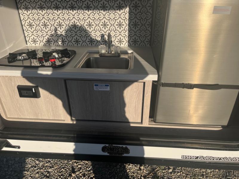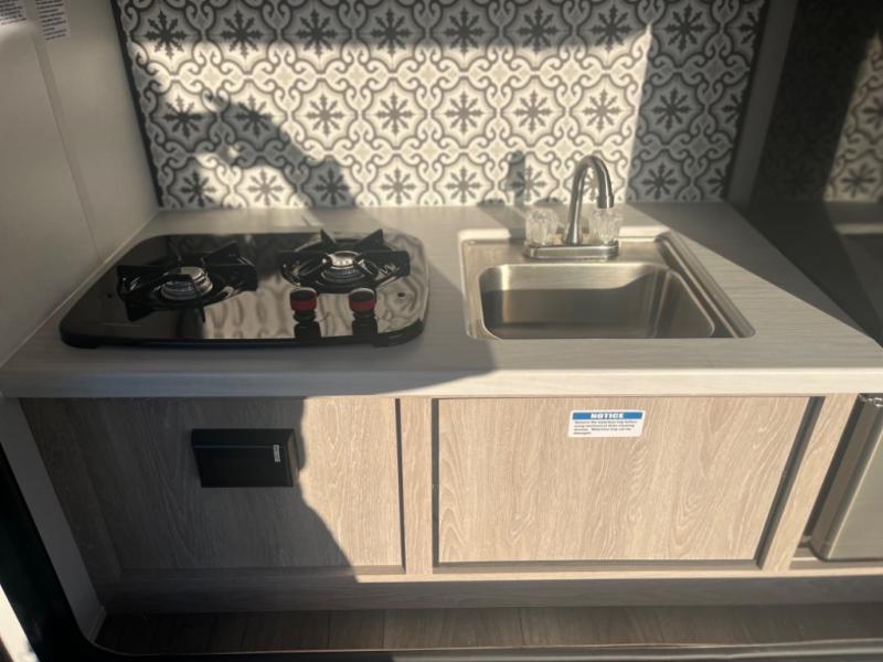 This model is perfect for first time RVers or seasoned campers alike. You won't have to sleep on the hard ground since this model includes a sofa, and your clothes can be stored in the wardrobe. There is also a shelf/front storage for additional belongings. The outside kitchen includes a two burner cooktop, a refrigerator, plus a microwave for quick meals. Get started today on your next big adventure in this lightweight travel trailer!