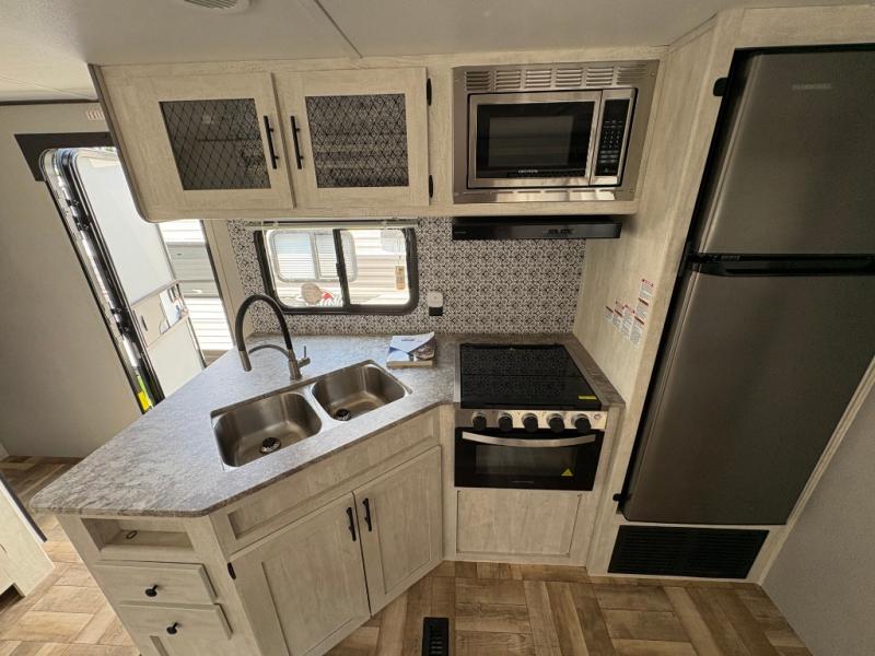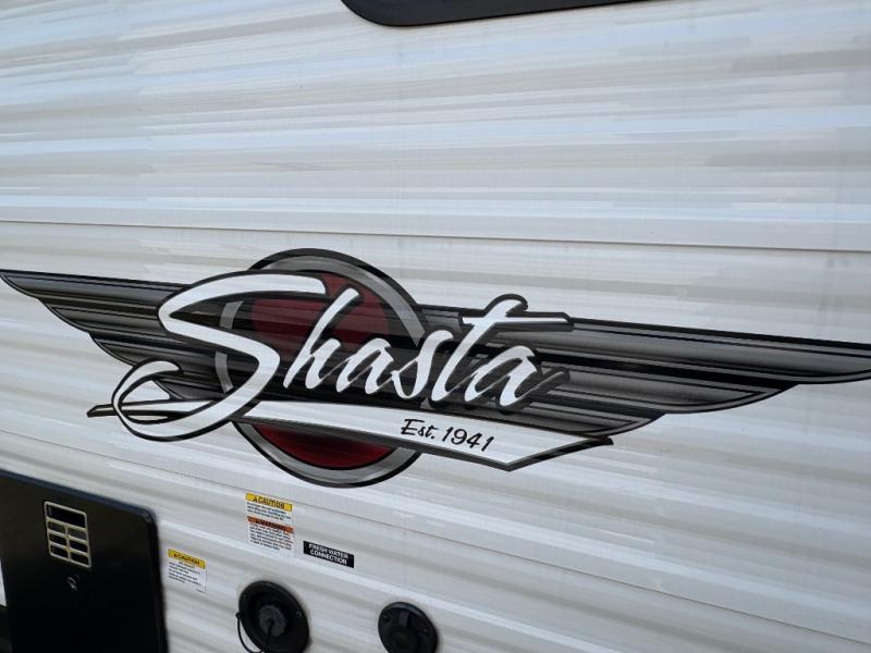 With each Shasta travel trailer by Shasta RVs, premium construction products are used such as radius wood rafters, wall studs on 16” centers, cambered steel i-beam frame, Congoleum flooring, and seamless countertops. Also included is an aerodynamic radius front profile, a front colored rock guard to protect against road debris, a straight axle with electric brakes, molded rain gutter with extra long spouts, and a power tongue jack for easy setup. The interior offers decorative cabinet pulls, USB charging stations, an under-mount kitchen sink with sink cover, and more providing value and convenience. Rest easy when you purchase a lightweight Shasta that is built to last!