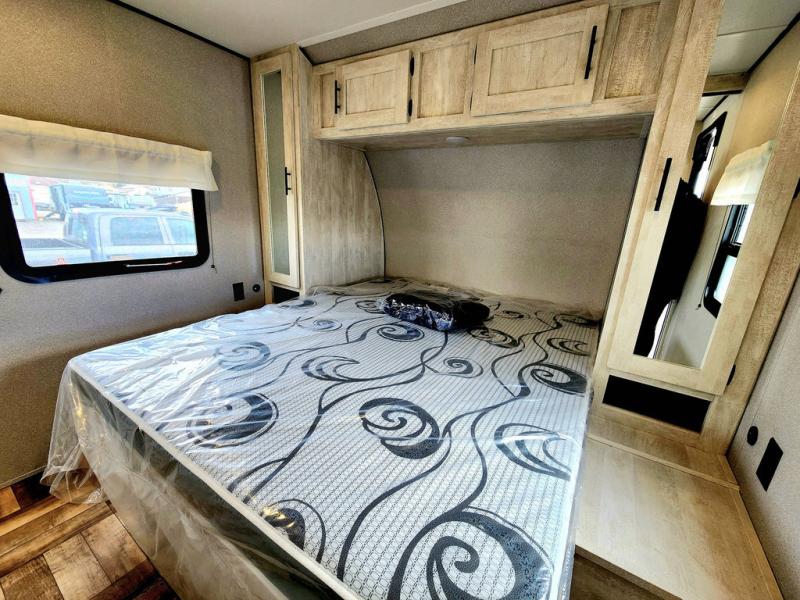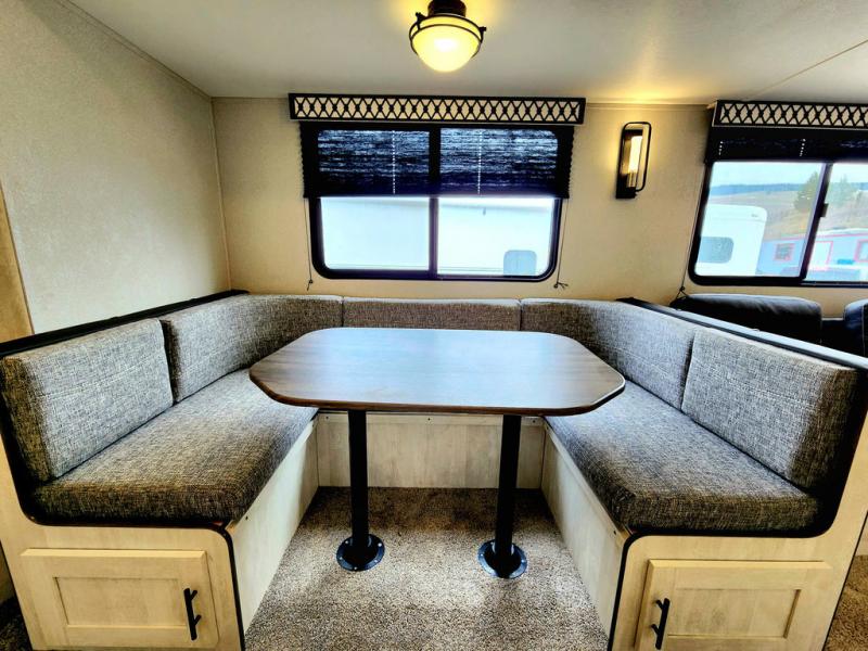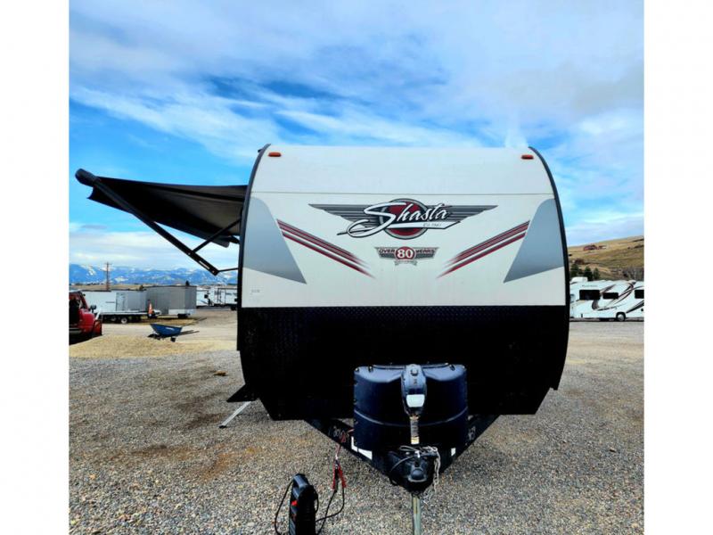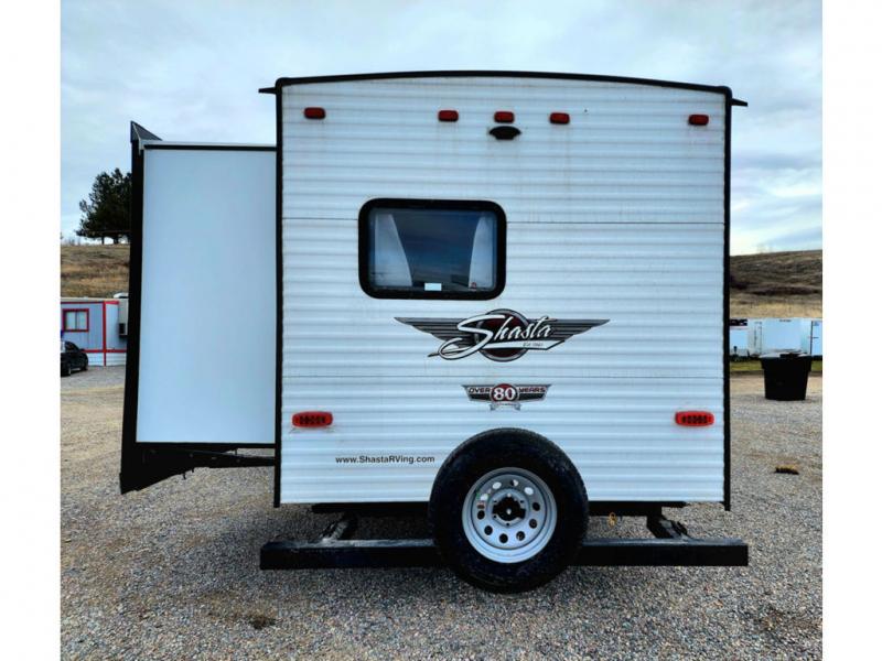 With each Shasta travel trailer by Shasta RVs, premium construction products are used such as radius wood rafters, wall studs on 16” centers, cambered steel i-beam frame, Congoleum flooring, and seamless countertops. Also included is an aerodynamic radius front profile, a front colored rock guard to protect against road debris, a straight axle with electric brakes, molded rain gutter with extra long spouts, and a power tongue jack for easy setup. The interior offers decorative cabinet pulls, USB charging stations, an under-mount kitchen sink with sink cover, and more providing value and convenience. Rest easy when you purchase a lightweight Shasta that is built to last!