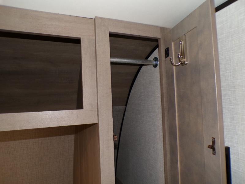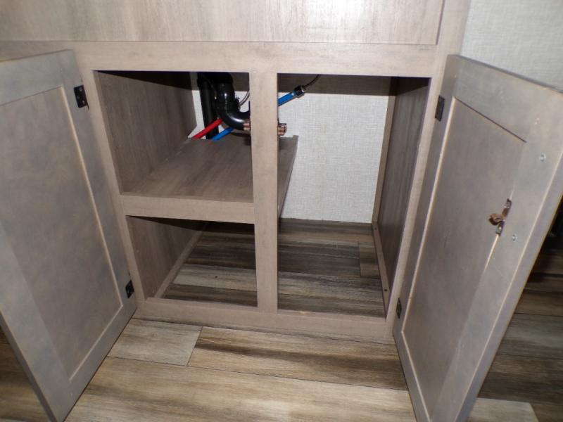 This cozy single axle travel trailer can sleep three people comfortably thanks to the front walk-around bed and the booth dinette. There is a full rear bath with a foot flush toilet, a powered bath vent, plus a bath wardrobe for clean towels and toiletries. The full kitchen is complete with a three burner cooktop, a microwave oven, and a refrigerator to keep your perishables fresh. Start camping today at your favorite campground!