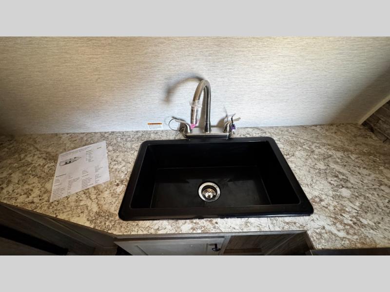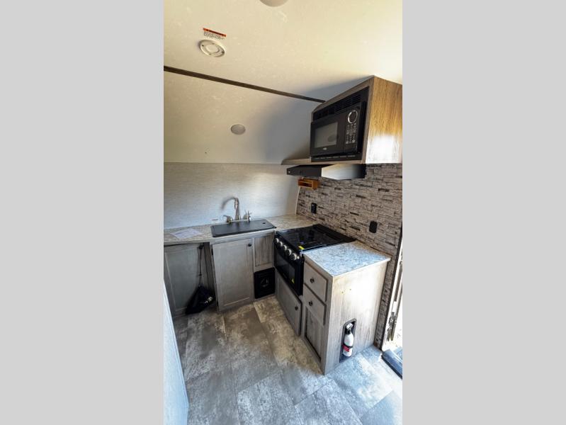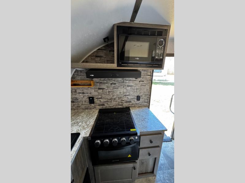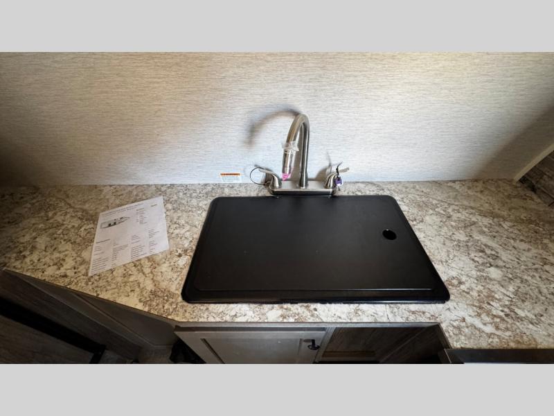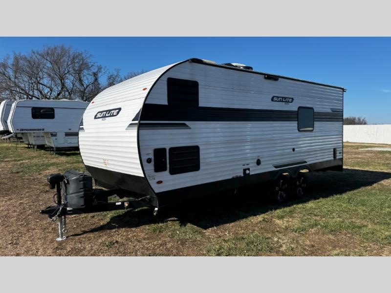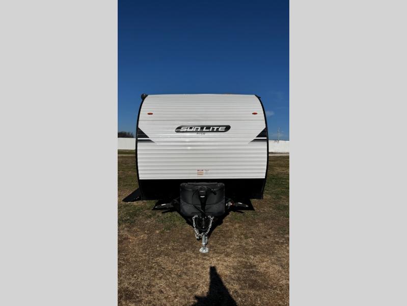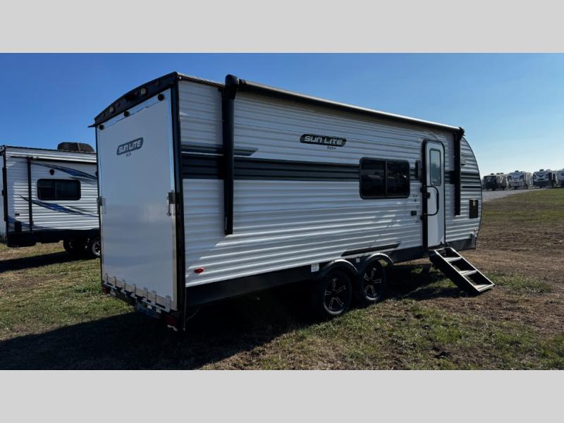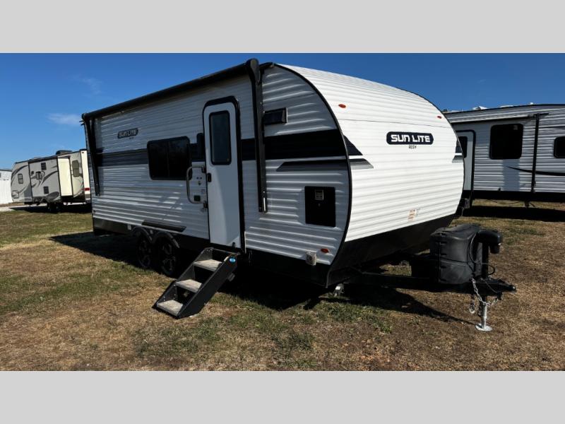 You can trust the build and enjoy your experience with any one of these Sunset Park RV Sun Lite travel trailers! Their aerodynamic profile is not only easy to haul, but also saves on fuel. They are built to withstand years of traveling even though they are lightweight with a diamond plate rock guard, a one piece PVC roof membrane, Dexter Spring-Leaf axles, and tinted safety glass windows. Some comfort standards you are sure to enjoy are the two-burner stove top range with hood, light and fan, plus refrigerator and microwave, and an outside shower to help keep the dirt outdoors where it belongs.