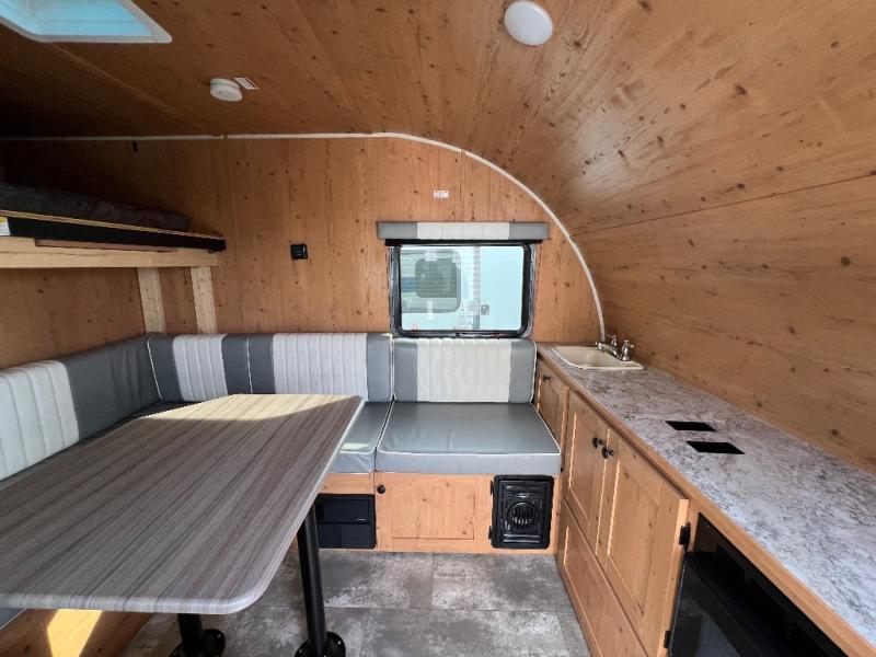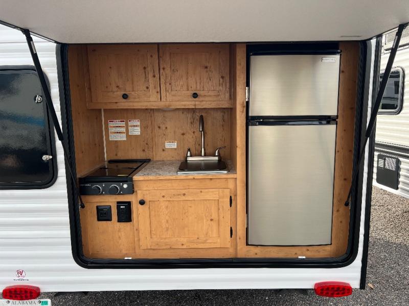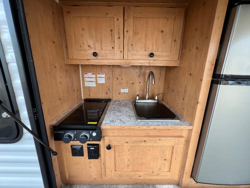 It will be amazingly easy to get to the campsite with this Sunray travel trailer! You can use the dinette during the day as a dining location and at night as a sleeping space, and the 40" x 78" bunk above the dinette will serve as an additional sleep space for another tired traveler. Make your world-famous pancakes on the two-burner stove top outside, and spend some time washing dishes afterwards in the indoor and outdoor sink. Also on the interior, you will find a private toilet which will be ultra convenient when you wake up in the middle of the night and need to go to the bathroom. You can add the optional Sports Package featuring 14" tires instead of the off-road tires, color matching rims with Moon Caps, and Retro Decor and Diner-Style Countertops.