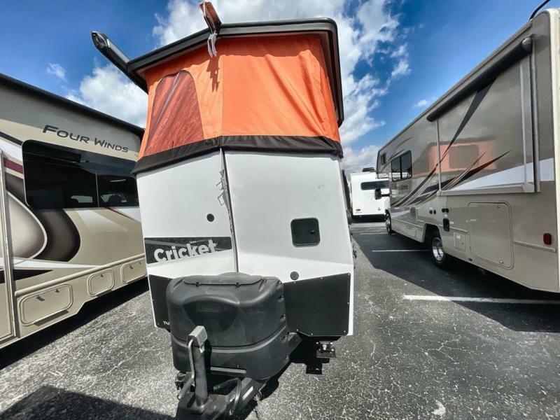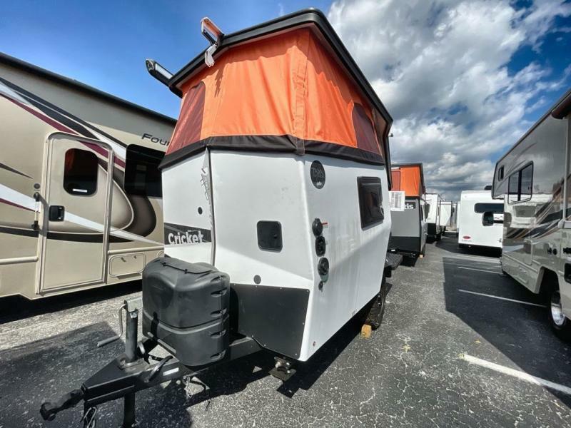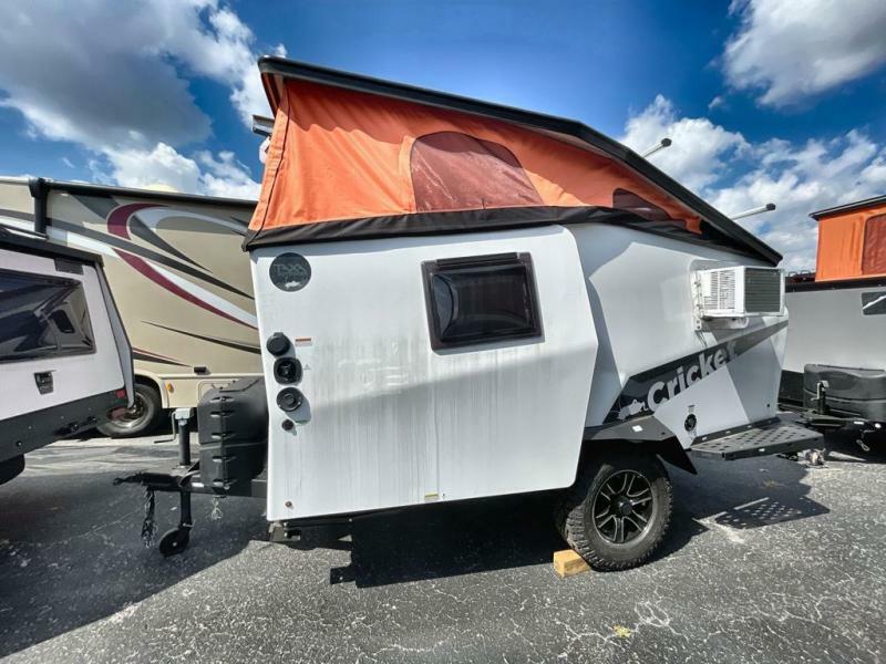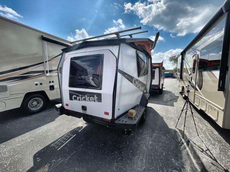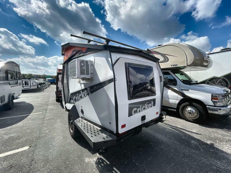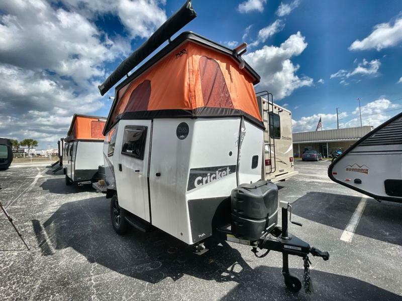 This Cricket travel trailer is rugged enough for all of your adventuring! This trailer has excellent utility with its increased ground clearance and premium accessories that create a rougher and stronger travel companion. The full-size bed has under-bed storage so that you can keep all of your essentials readily available, and the redesigned kitchen has a large countertop that features a two-burner stove and covered sink for easy meal prepping. This trailer also has an articulating Lock N' Roll hitch that utilizes 360 degrees of rotation and 3 axis movement so that you can have more freedom than you would with a ball hitch.