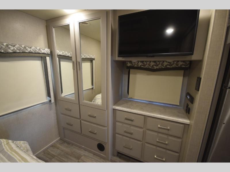 70" Dream Dinette, Rear Private Bedroom with 32" TV, Expansive Bunk Over Cab, Dual Slide-Outs for Extra Space, Outdoor 32" TV for On-the-Road Entertainment