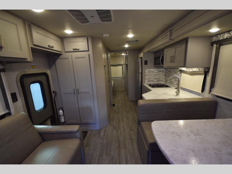 Inside, you’ll find an inviting, residential-style layout with double slides that expand your living space for ultimate comfort. The bunk over the cab offers a cozy retreat for guests or kids, while the rear private bedroom with an RV queen bed and 32" TV gives you the perfect place to unwind after a long day of exploration.
