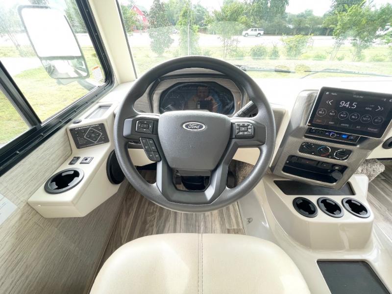 The A.C.E Class A gas motorhome is constructed with a welded tubular steel floor, vacu-bond laminated roof, walls and floor with block foam insulation, and a premium one-piece exterior roof for a coach made to last. You will love the pet-friendly features, like the Bird's Eye window, the Pet-Link multi-purpose tie-down and the Pull-Out Kibble Station with an FDS approved pet bowl liner. Each model includes an Onan RV QG 4,000 gas generator, a Winegard ConnecT Wi-Fi extender +4G, and are pre-wired for solar charging. Some of the other convenient amenities you will find on the A.C.E are frameless windows, a basement pass-through storage, and an exterior LP connection. Head inside to find residential vinyl flooring, pressed laminate countertops, glass tile backsplash in the kitchen, and a designer headboard, bedspread and pillow shams in the bedroom for all-around comfort!