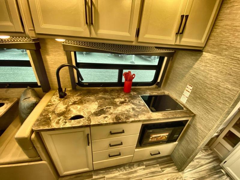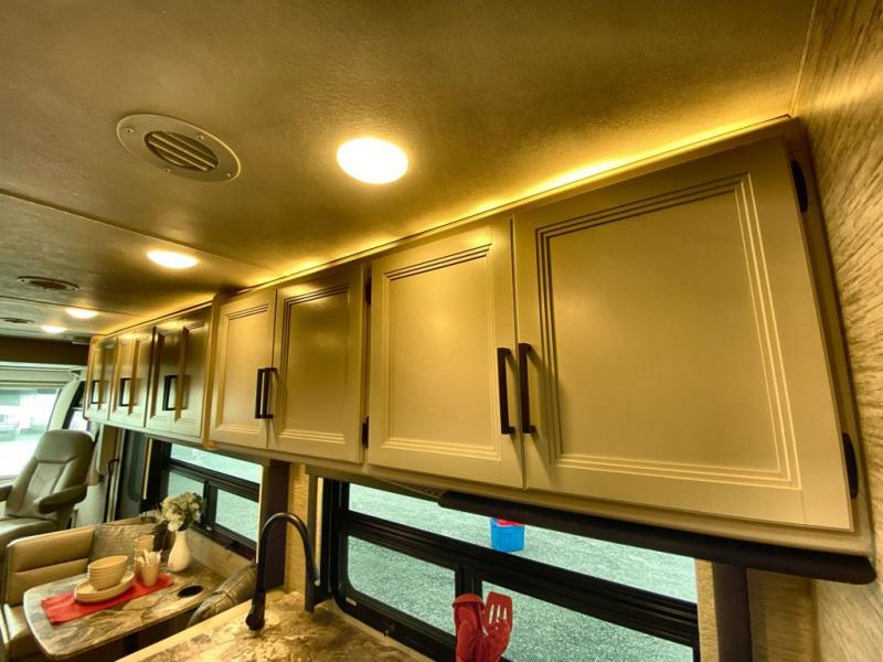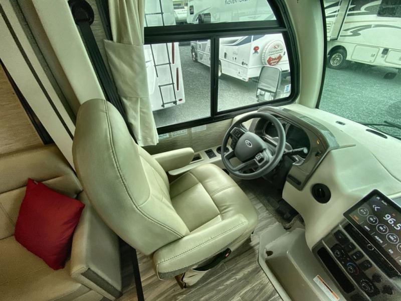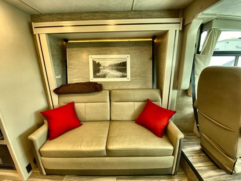 With any Axis RUV Class A gas motorhome by Thor Motor Coach you will enjoy added technology features to make each trip enjoyable, like the RapidCamp+ multiplex lighting and systems control and the Winegard ConnecT 2.0 Wi-Fi/4G/TV antenna. Each model features heated and remote exterior mirrors with integrated side view cameras, reclining and swivel leatherette captain's chairs, and a dash workstation with 110-volt and 12-volt outlets to get some work done if needed. Relaxing after a long day of traveling will be easy with the leatherette furniture, the Euro-style cabinet doors, and 82" interior ceiling height. The HD-MAX exterior with graphics package and black frameless windows provide a sleek look you are sure to love, and don't overlook the power awning with integrated LED lighting and lighted rotocast storage compartments for all your gear.