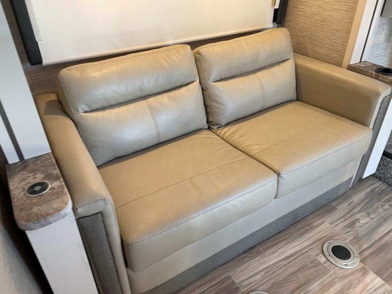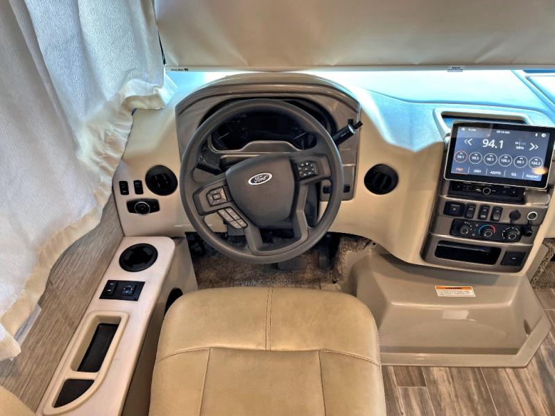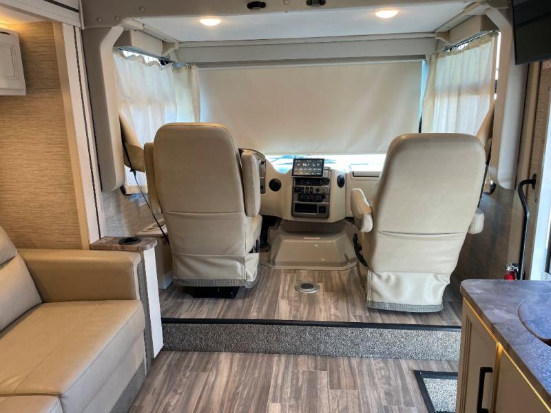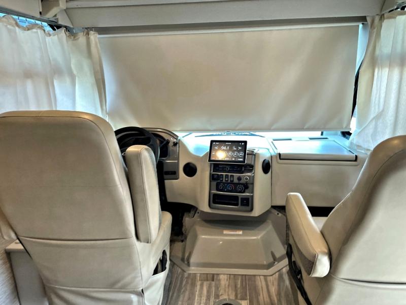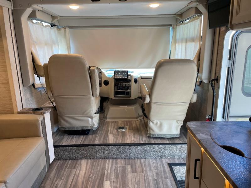 With any Axis RUV Class A gas motorhome by Thor Motor Coach you will enjoy added technology features to make each trip enjoyable, like the RapidCamp+ multiplex lighting and systems control and the Winegard ConnecT 2.0 Wi-Fi/4G/TV antenna. Each model features heated and remote exterior mirrors with integrated side view cameras, reclining and swivel leatherette captain's chairs, and a dash workstation with 110-volt and 12-volt outlets to get some work done if needed. Relaxing after a long day of traveling will be easy with the leatherette furniture, the Euro-style cabinet doors, and 82" interior ceiling height. The HD-MAX exterior with graphics package and black frameless windows provide a sleek look you are sure to love, and don't overlook the power awning with integrated LED lighting and lighted rotocast storage compartments for all your gear.