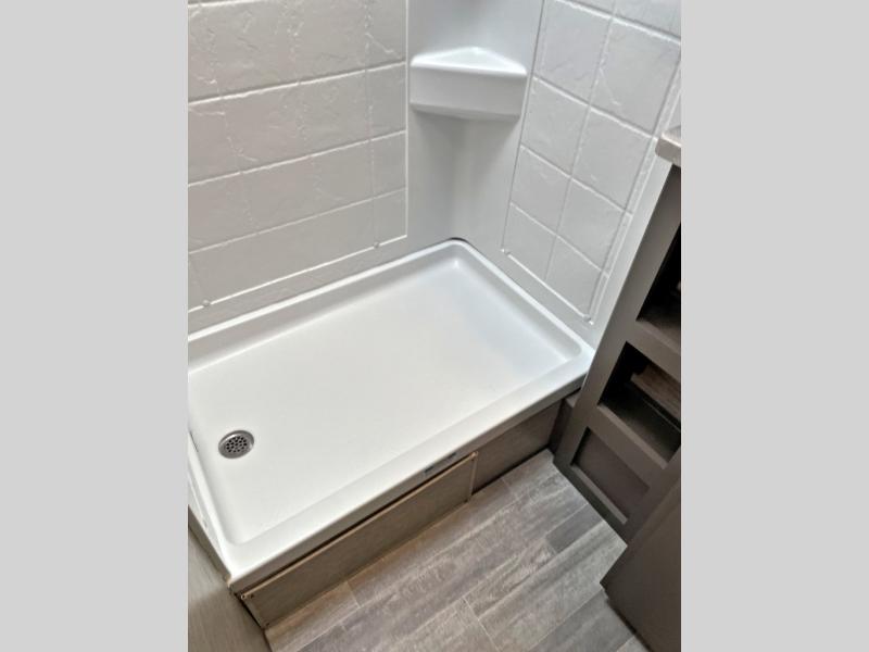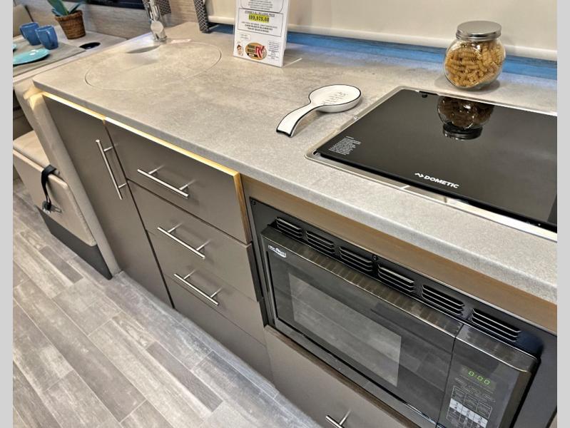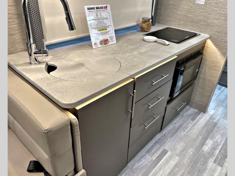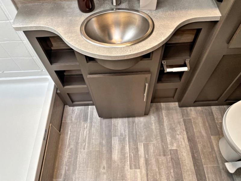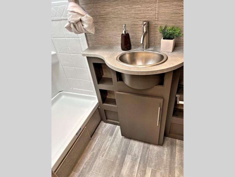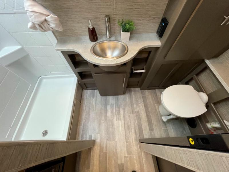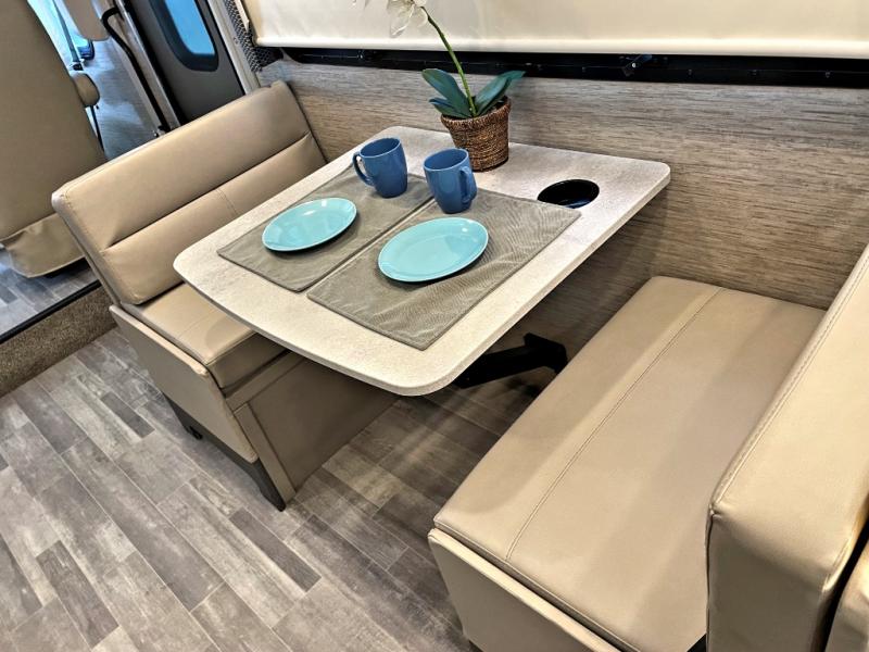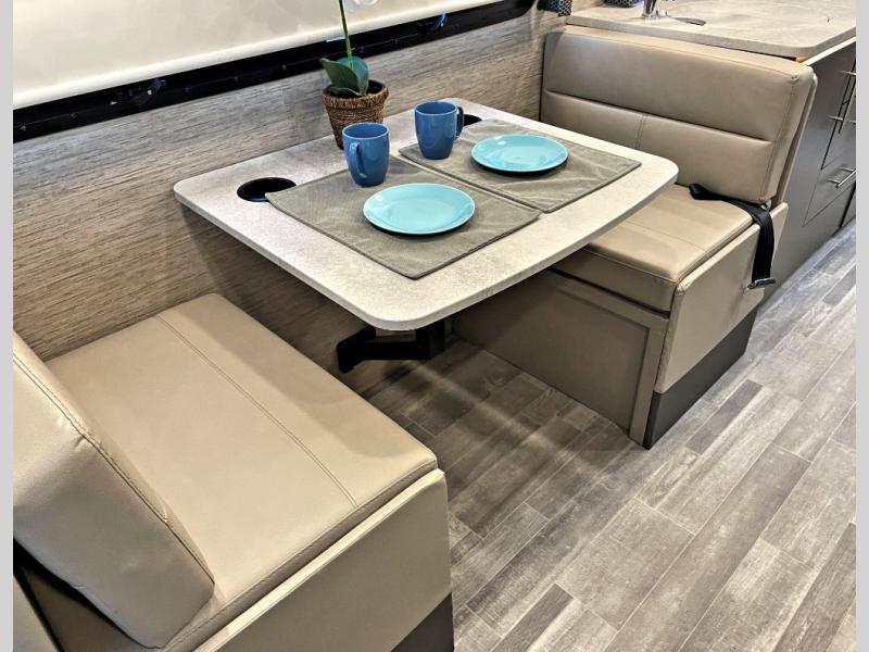 Versatility comes standard in this coach thanks to the queen-size Murphy bed. Enjoy a comfortable bed at night, and easily fold it away during the day to relax on the 67" Sofa. The slide out here will provide more space to stretch out, and you'll also find a booth dinette with cup holders to dine together. This model features plenty of counter space to prep meals, as well as a double door refrigerator for perishables and a pantry for snacks. Having a full rear bath on board will provide privacy and allow you to clean up each day.