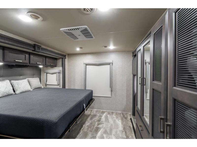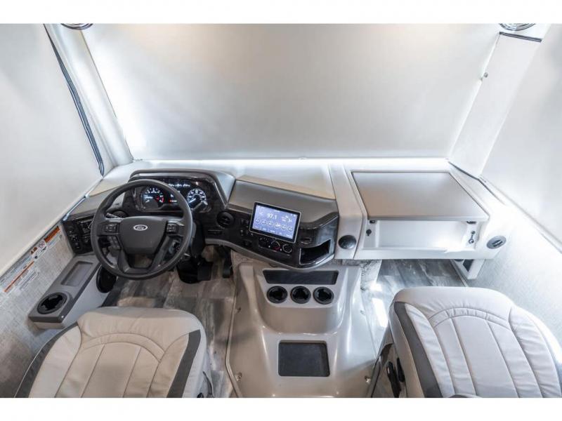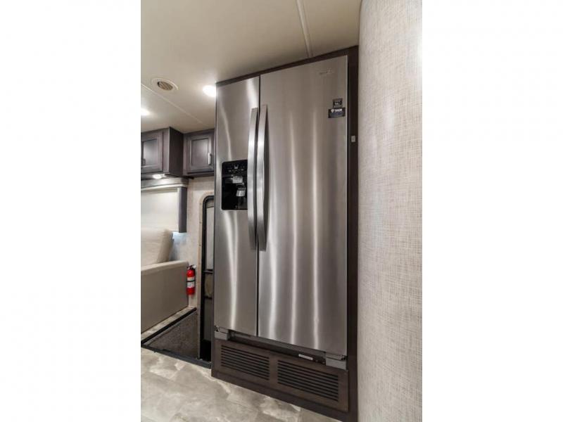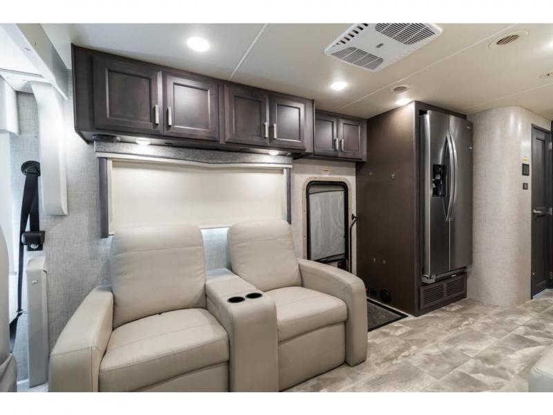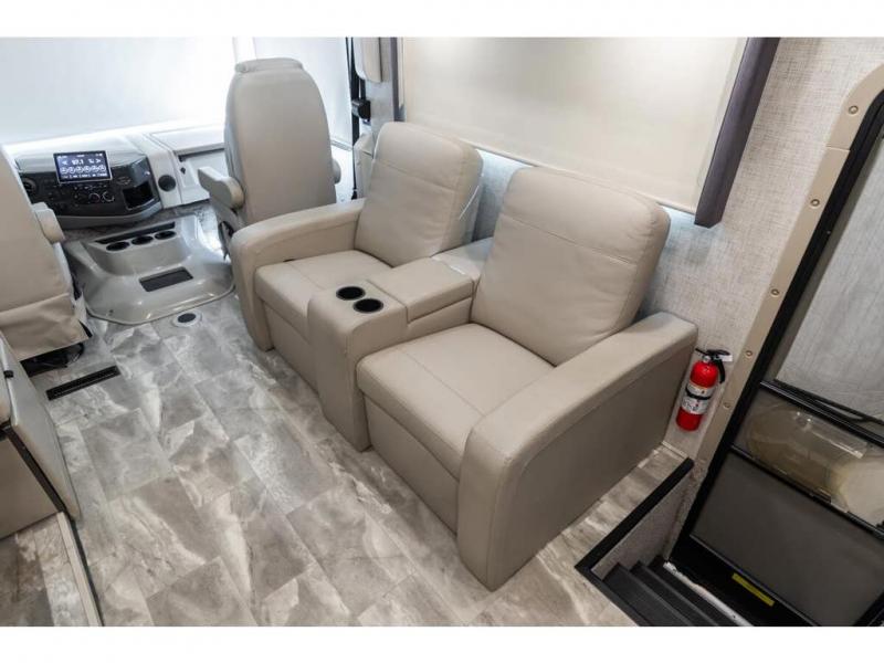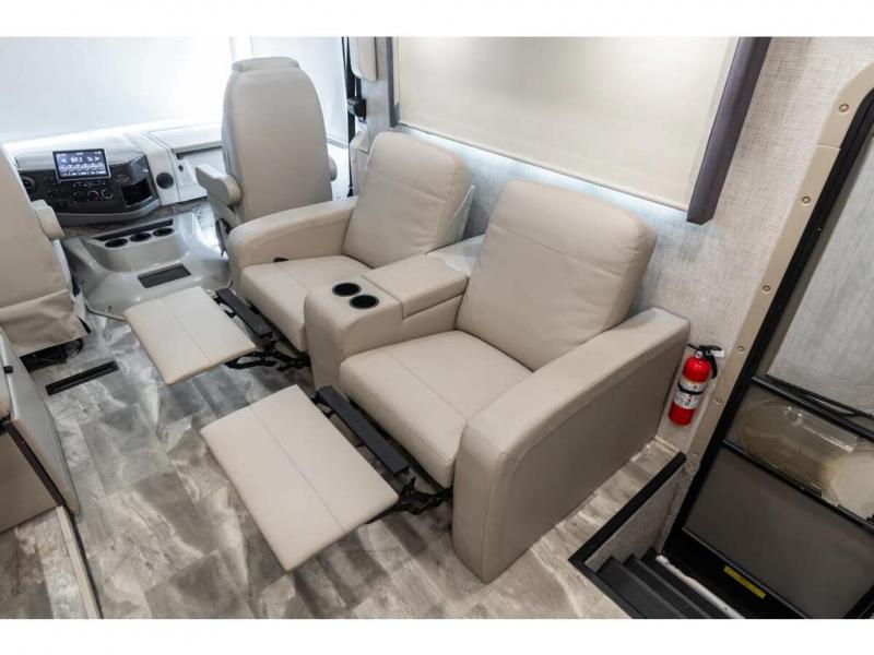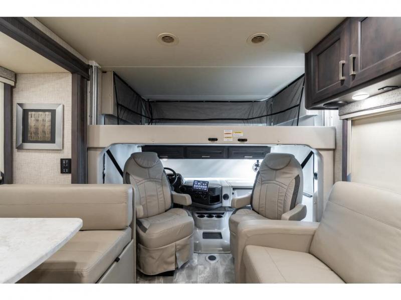 Hop on board the Challenger Class A gas motorhome by Thor Motor Coach for an adventure of a lifetime. The modern dash features a 10.1" touchscreen dash radio with Bluetooth and Sirius/XM radio, plus there are reclining/swivel leatherette captain's chairs for your comfort. Setting up your coach will be a breeze with the automatic leveling jacks with touchpad controls, and each model includes an Onan RV QG 5500 gas generator, dual roof A/C's, and many more amenities for hassle-free camping. The interior of the Challenger will have you feeling at home in a heartbeat. Residential vinyl flooring, solid surface countertops, and satin-finish cabinetry are just a few comforts you will enjoy. Each model also includes a Winegard ConnecT WiFi extender +4G to keep you connected to the outside world as you travel, and an entertainment package that will never leave you bored!