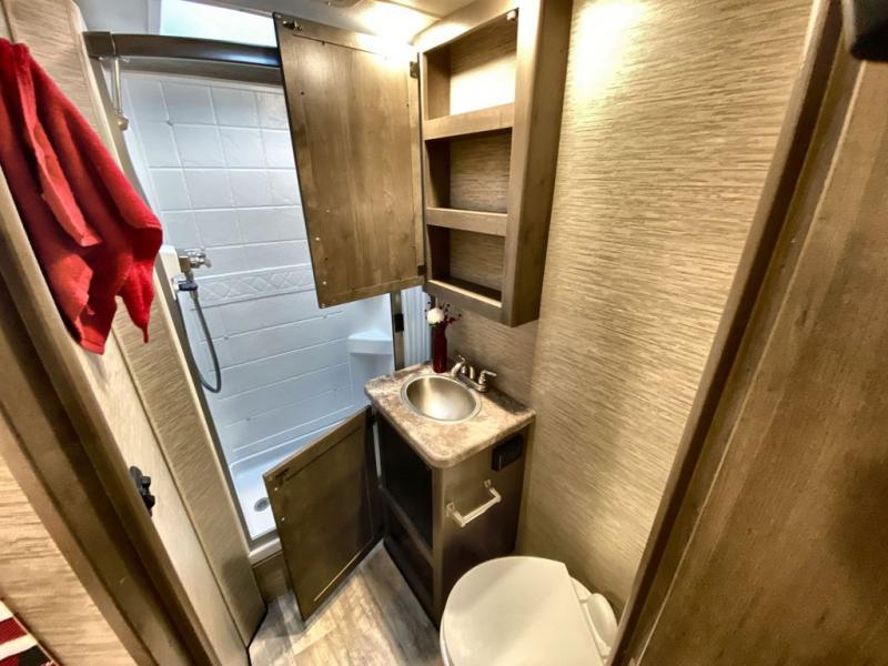 If you wish to escape the hustle and bustle of everyday life with your favorite people then check out this motorhome! Everyone will have a comfortable place to sleep between the rear corner 54" x 80" queen bed, the 52" x 96" bunk over cab with a 40" TV on a swivel for entertainment at night, and even the 76" Dream Dinette can transform into an extra sleeping space. Store all of your essentials in the closet just outside the rear corner bathroom which has a 24" x 36" shower and keep your perishables fresh in the refrigerator. The flip-up countertop extension makes it easier to prepare your home cooked meals, and you can add an optional exterior 32" TV to watch the big game outdoors!