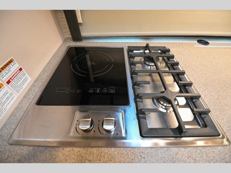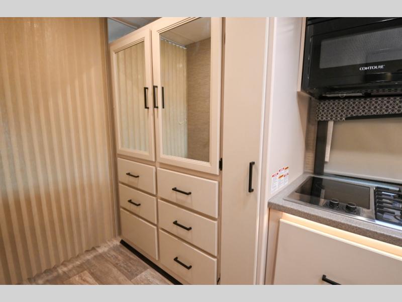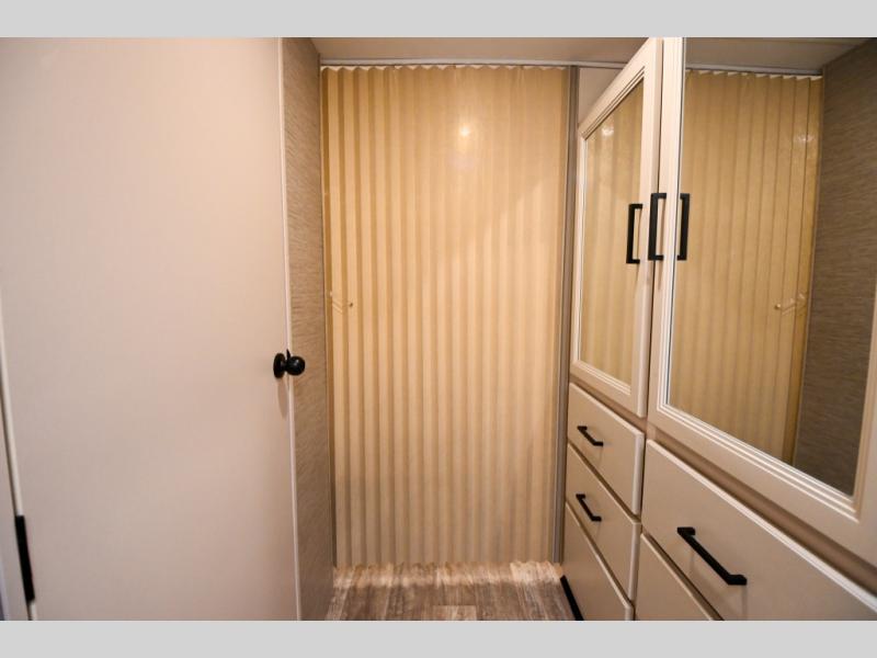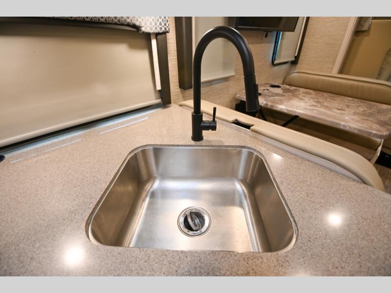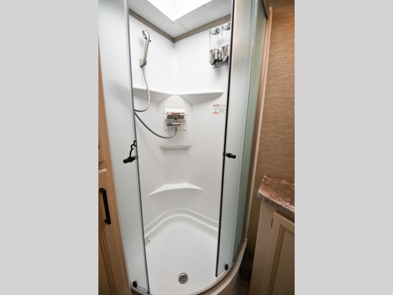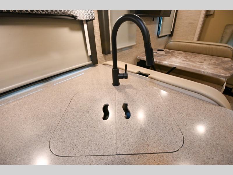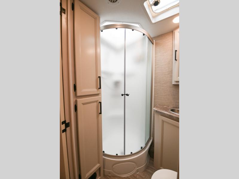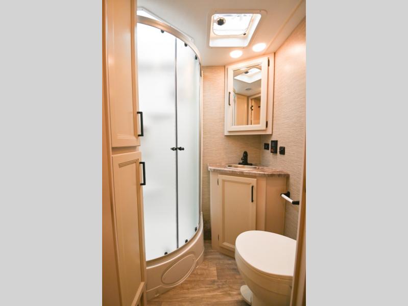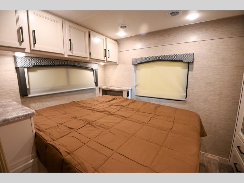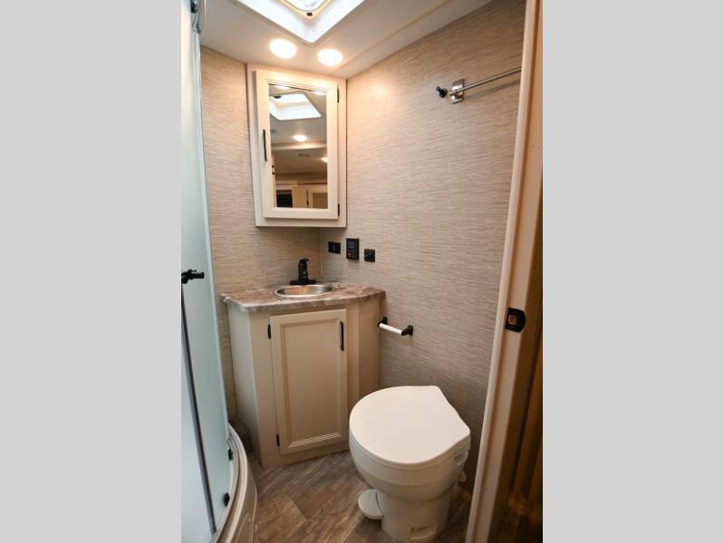 Make your dreams come true with this motorhome! Enjoy at home comforts like a rear private bedroom with a 60" x 75" queen bed, a closet, a dresser, and a 32" TV. There is also a 40" TV above the 71" Dream Dinette and an optional exterior 32" TV for even more entertainment. Freshen up each morning in the full bathroom with the 32" x 32" radius shower with a skylight for added natural lighting then fill your bellies with some yummy bacon cooked on the two burner cooktop. Next to the kitchen pantry is a large closet for your storage needs. Relax in true comfort at night on the 68" jackknife sofa or the optional theater seating if you chose to switch it out for that instead!