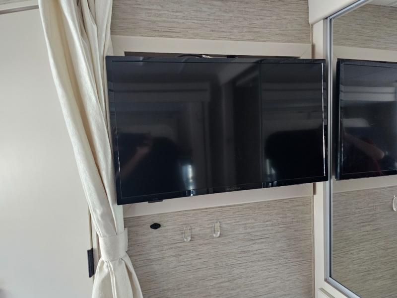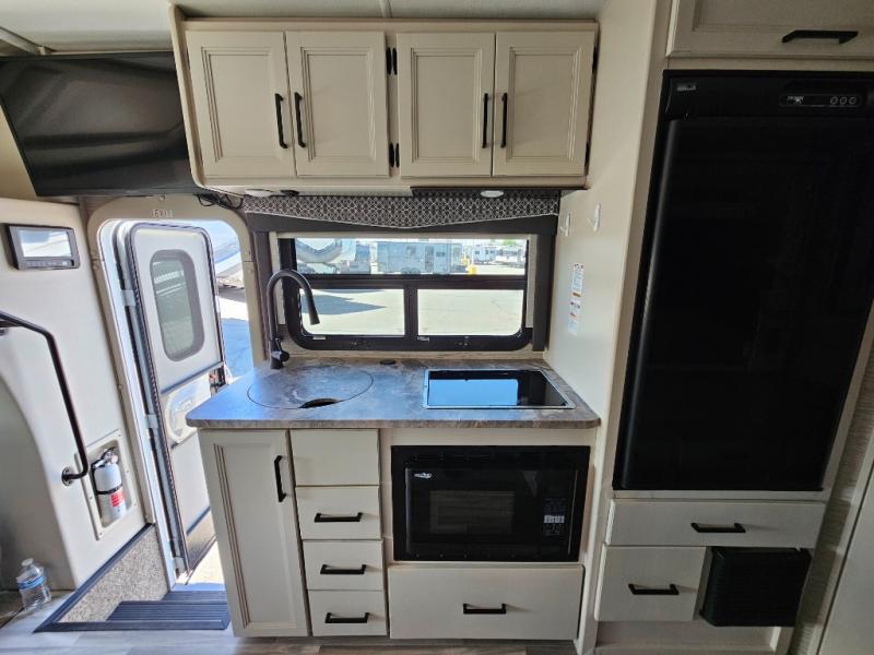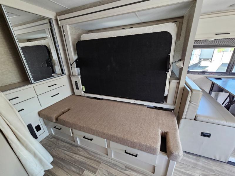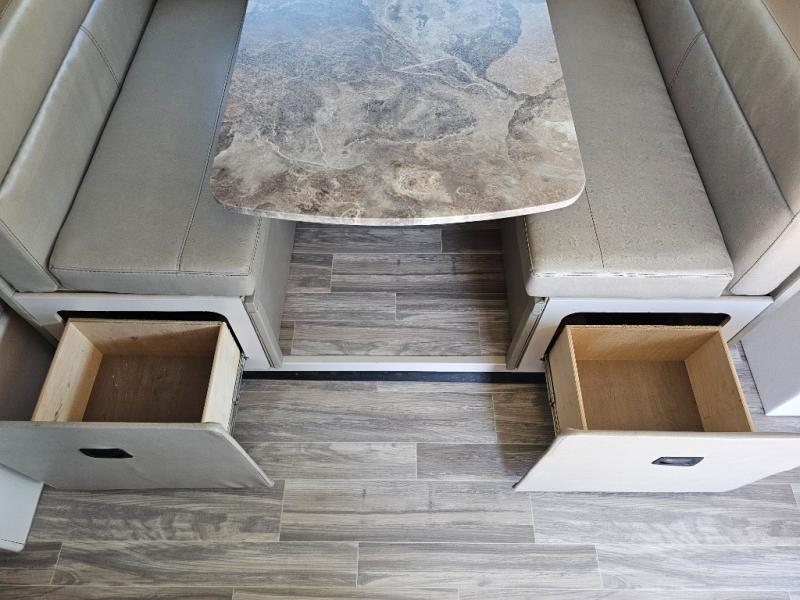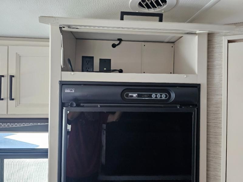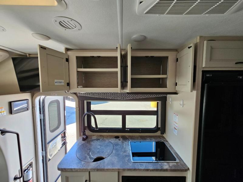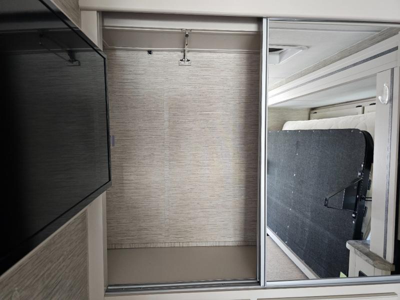 You can tour a local winery or trek up north to find a cozy and secluded camping spot with this Compass AWD Class B+ gas motorhome! All of your needs will be met with the excellent features and amenities included on this coach, like the full bathroom complete with a 24" x 32" shower, three robe hooks, a shower skylight, a foot-flush toilet, and a power bath vent. The kitchen is ready to help you make mobile meals, and the 68" Dream Dinette is the perfect place for eating those meals or playing a game later on. At the dinette table top, you'll find a wireless phone charger with USB plug so that you can charge your phones. There is a privacy curtain that sections off the flip-up RV queen bed, and you'll also find a 32" TV in the bedroom. The second 32" TV is located out in the main living area for everyone else to watch.