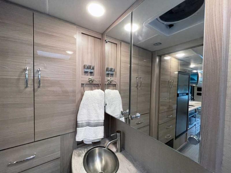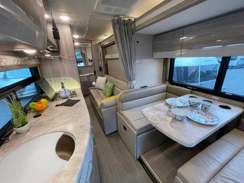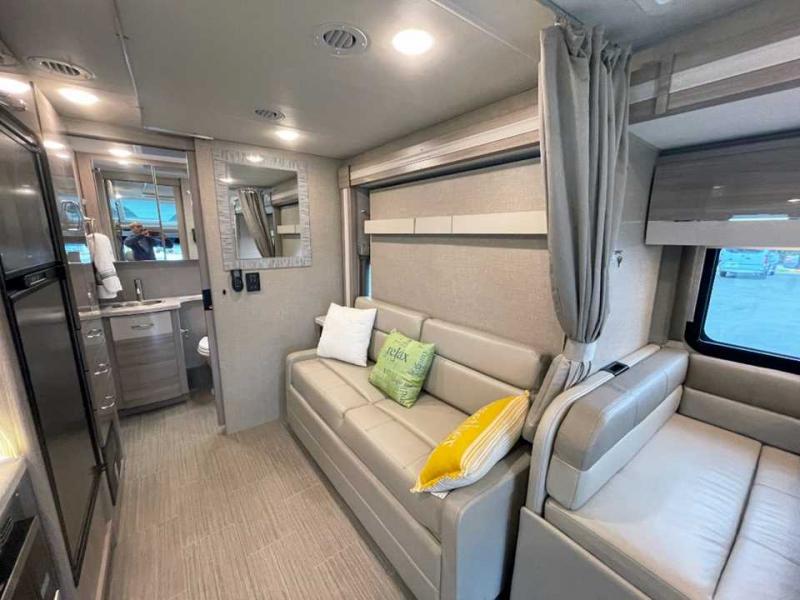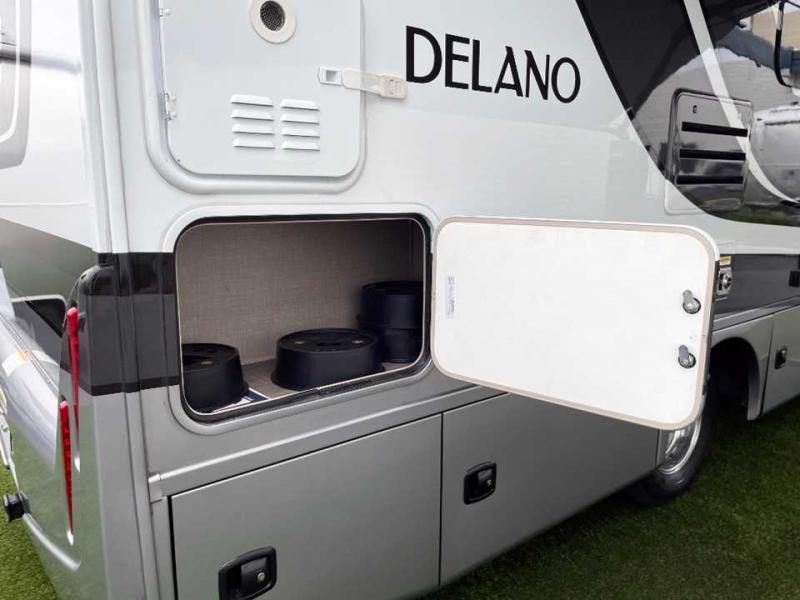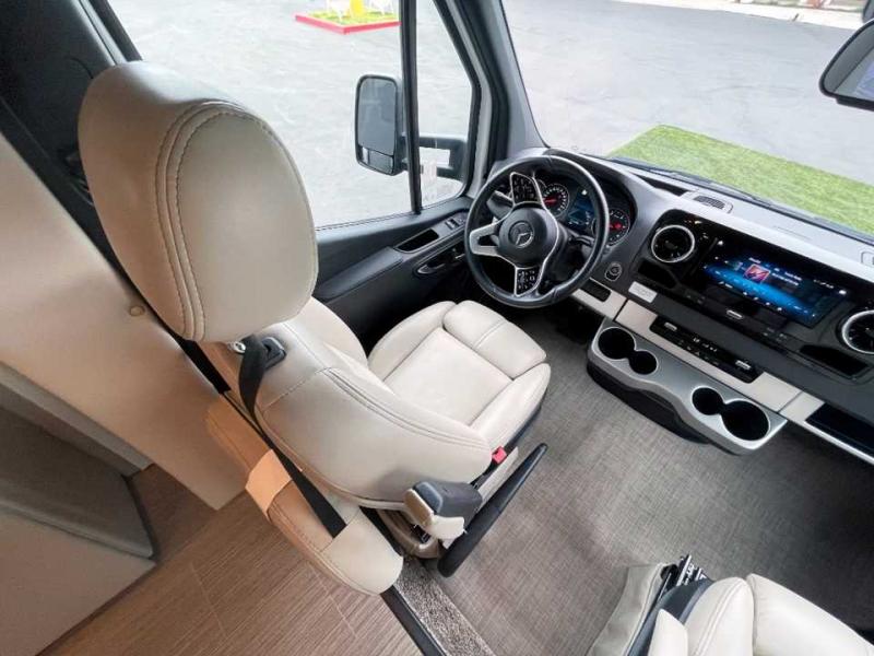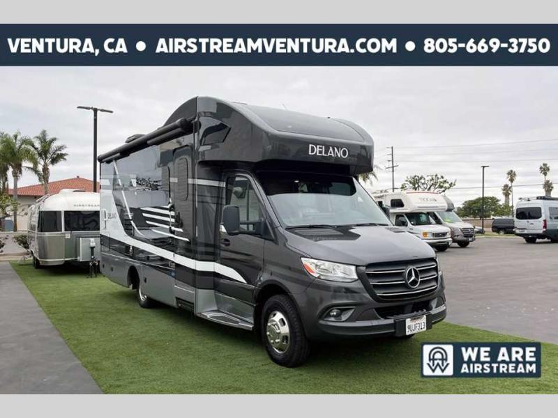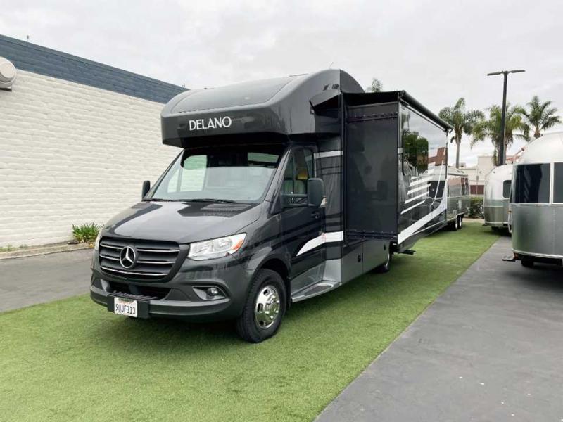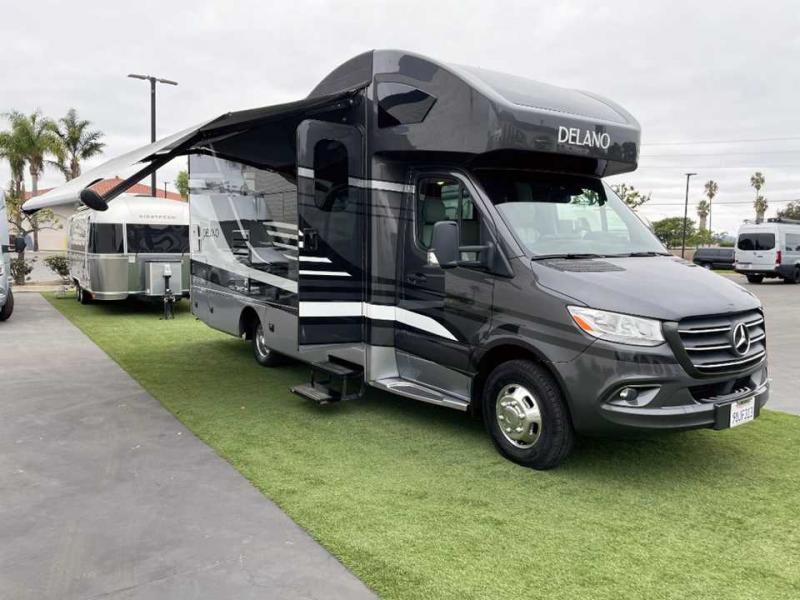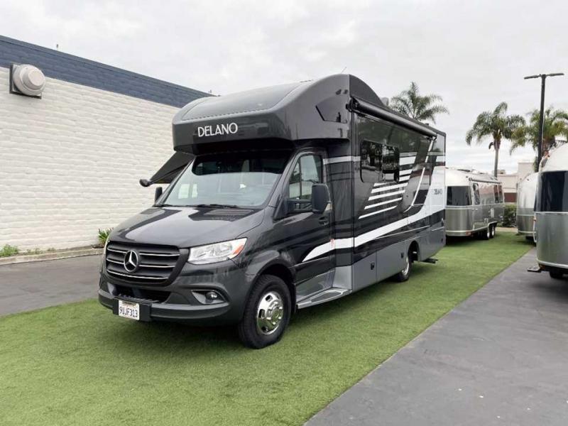 Luxury comes standard in the Delano Sprinter Class C diesel motorhomes by Thor Motor Coach. You will find it so easy to maneuver the road with the Mercedes-Benz Safety package that includes features such as active braking assist and distance regulator distronic plus that will help keep a safe distance from vehicles in front of you. The frameless windows and the full-body paint package with gel coated sidewalls is sure to be eye-catching, plus there is invisible front paint protection for added defense against the elements. Each model includes the Rapid Camp+ multiplex wiring control system that will make set-up easier than ever, a Winegard ConnecT 2.0 WiFi/4G/TV antenna to keep you connected to the outside world, and a whole coach water filtration system for fresh H2O day or night. The Delano Sprinter also includes many interior comforts, like the easy-to-clean residential vinyl flooring, the high-gloss Euro-style cabinetry, and the Leatherette furniture!