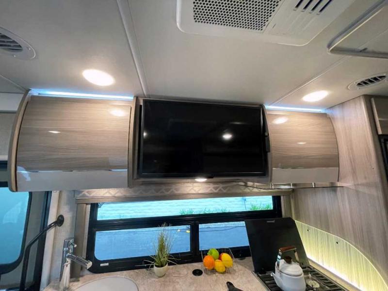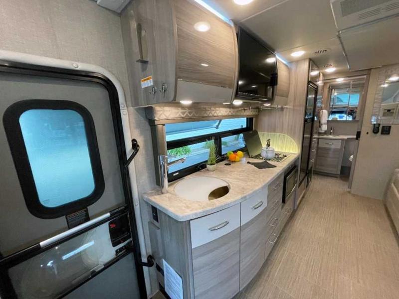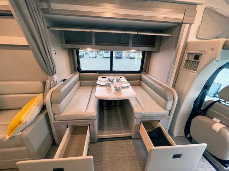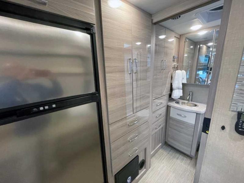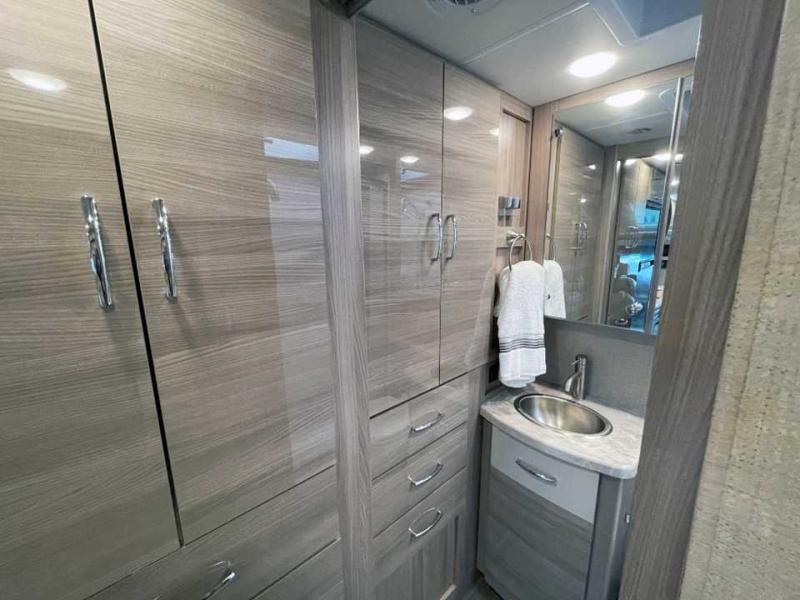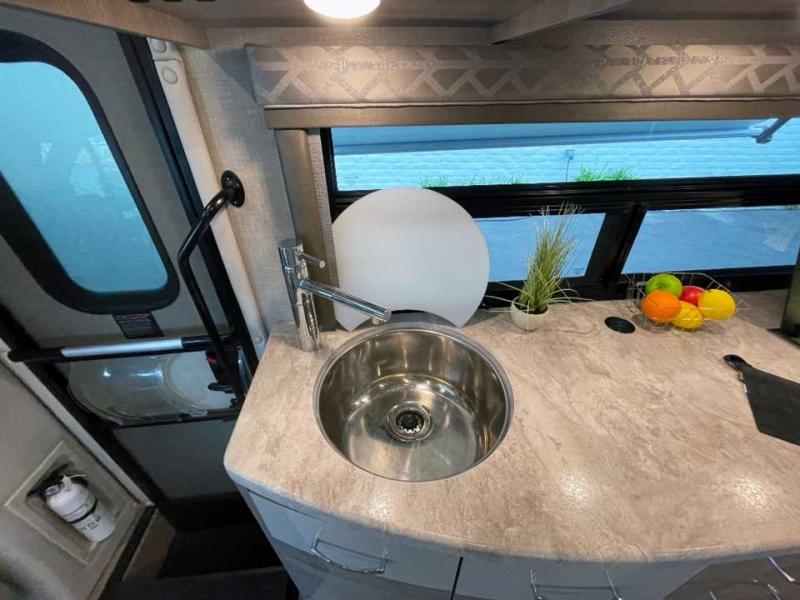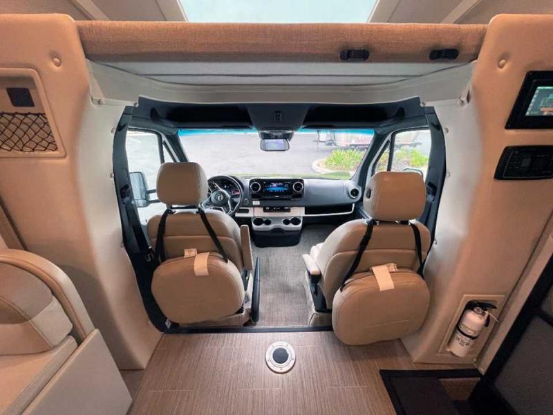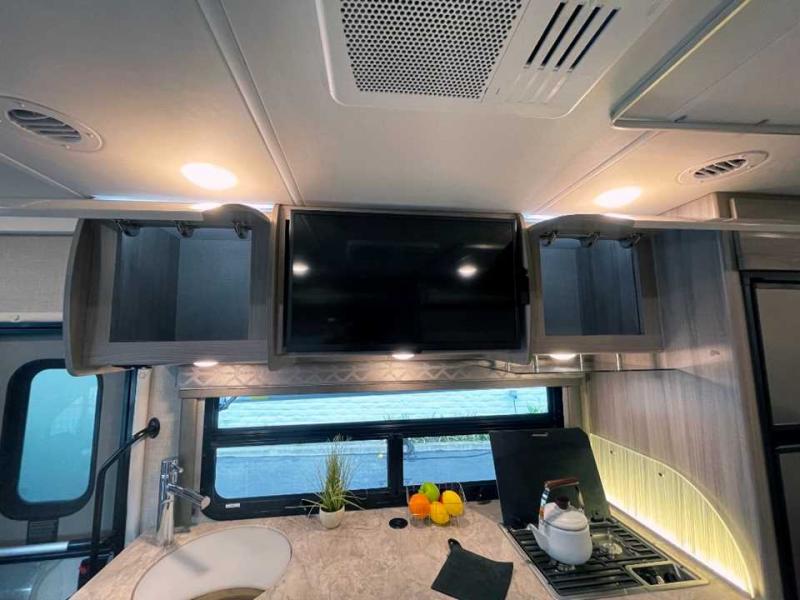 Luxury comes standard in the Delano Sprinter Class C diesel motorhomes by Thor Motor Coach. You will find it so easy to maneuver the road with the Mercedes-Benz Safety package that includes features such as active braking assist and distance regulator distronic plus that will help keep a safe distance from vehicles in front of you. The frameless windows and the full-body paint package with gel coated sidewalls is sure to be eye-catching, plus there is invisible front paint protection for added defense against the elements. Each model includes the Rapid Camp+ multiplex wiring control system that will make set-up easier than ever, a Winegard ConnecT 2.0 WiFi/4G/TV antenna to keep you connected to the outside world, and a whole coach water filtration system for fresh H2O day or night. The Delano Sprinter also includes many interior comforts, like the easy-to-clean residential vinyl flooring, the high-gloss Euro-style cabinetry, and the Leatherette furniture!