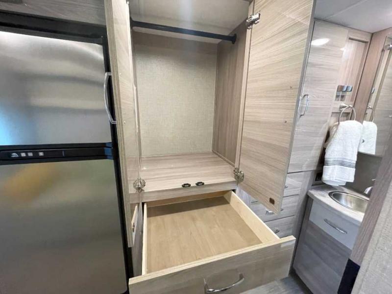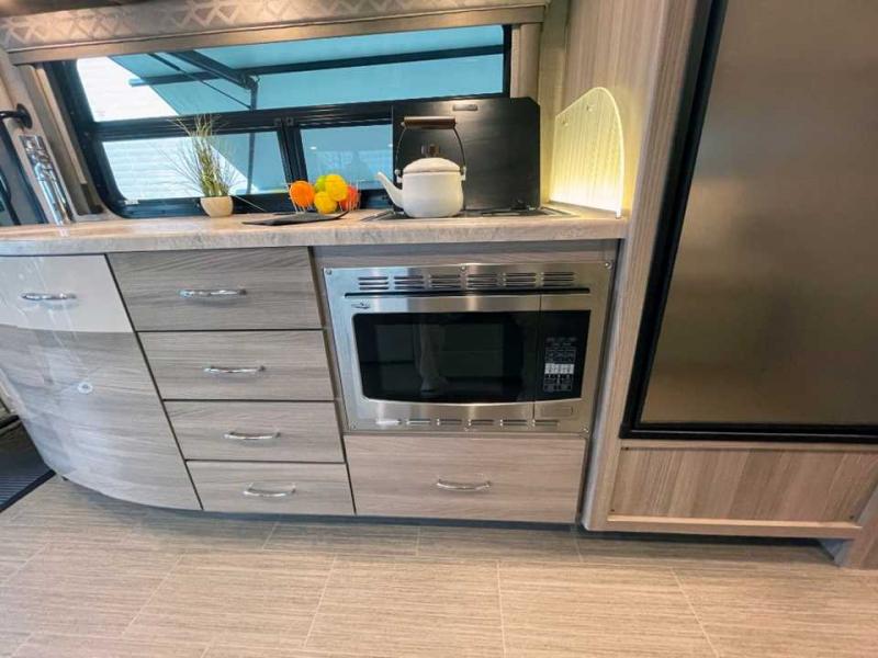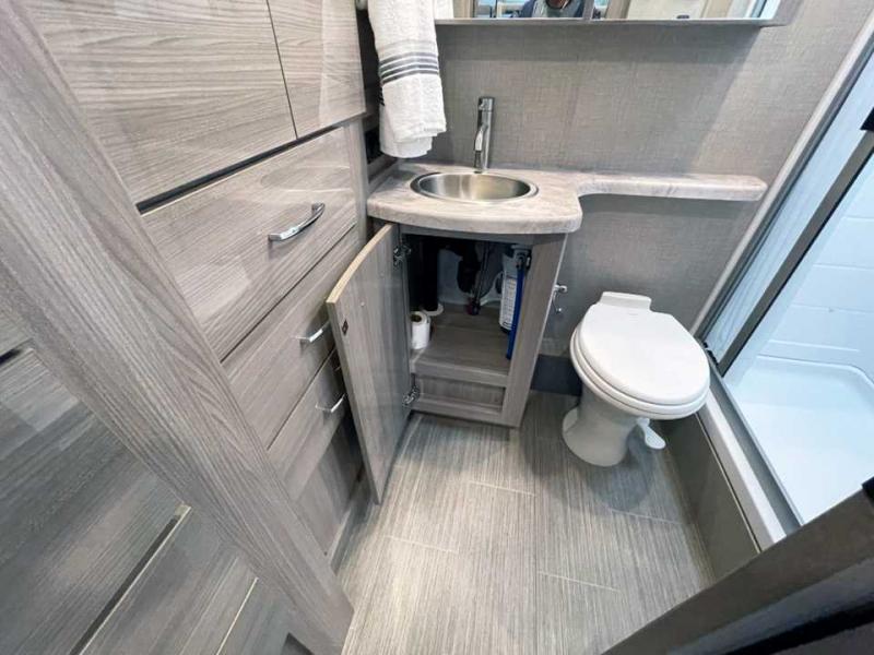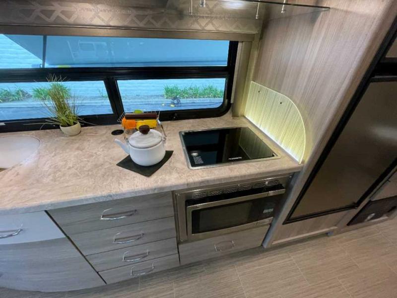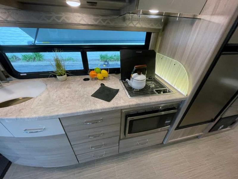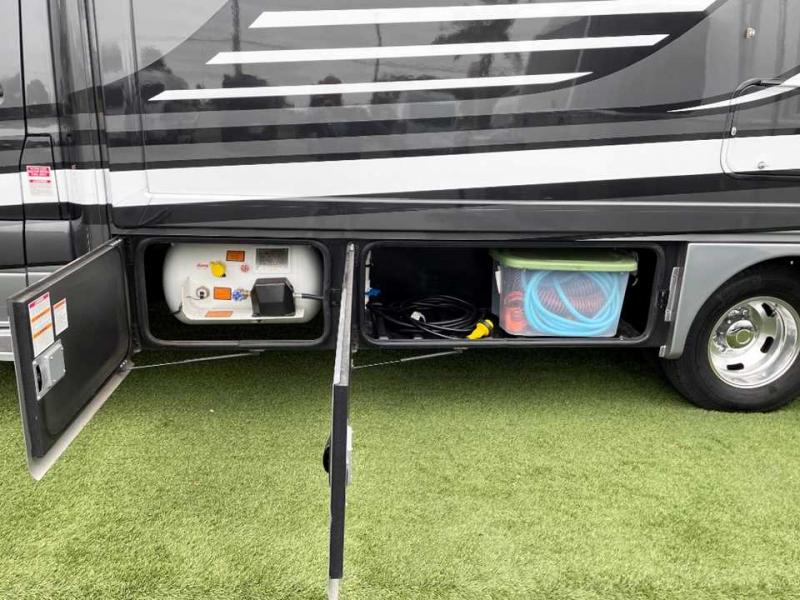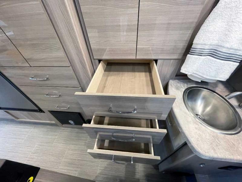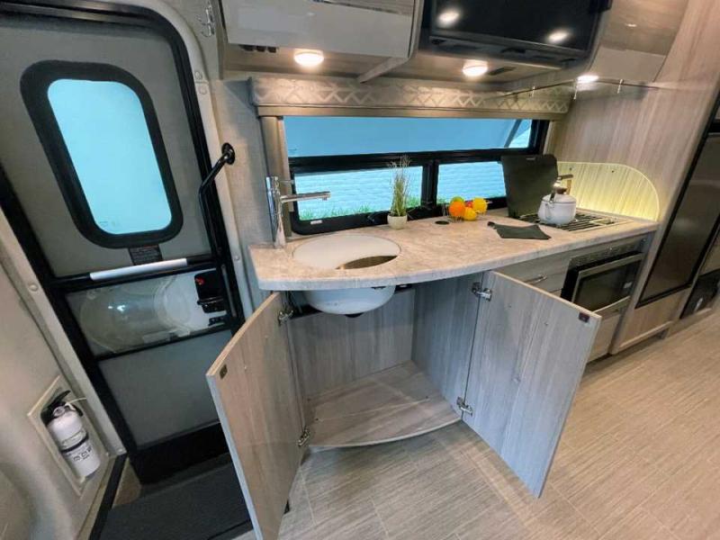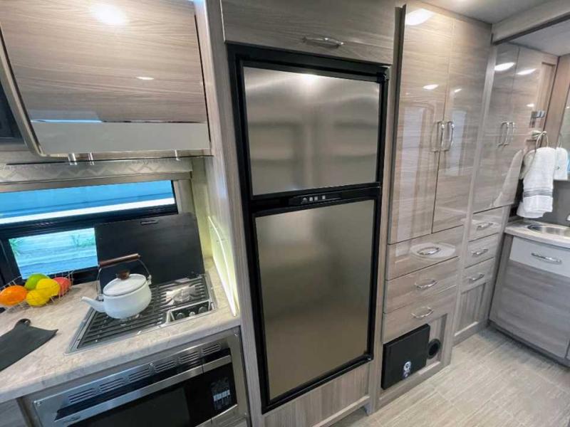 Luxury comes standard in the Delano Sprinter Class C diesel motorhomes by Thor Motor Coach. You will find it so easy to maneuver the road with the Mercedes-Benz Safety package that includes features such as active braking assist and distance regulator distronic plus that will help keep a safe distance from vehicles in front of you. The frameless windows and the full-body paint package with gel coated sidewalls is sure to be eye-catching, plus there is invisible front paint protection for added defense against the elements. Each model includes the Rapid Camp+ multiplex wiring control system that will make set-up easier than ever, a Winegard ConnecT 2.0 WiFi/4G/TV antenna to keep you connected to the outside world, and a whole coach water filtration system for fresh H2O day or night. The Delano Sprinter also includes many interior comforts, like the easy-to-clean residential vinyl flooring, the high-gloss Euro-style cabinetry, and the Leatherette furniture!
