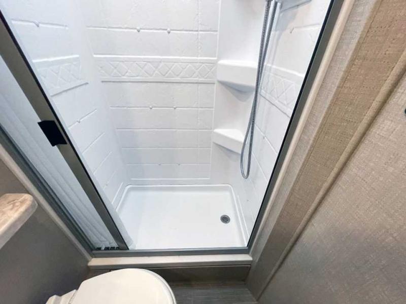 You can go just about anywhere your heart desires in this spacious coach for five. The cab-over bunk will be a big plus with the little ones, and you'll enjoy the Murphy bed when the 67" sofa isn't being used. Whip up a meal on the two burner gas cooktop, or use the convection microwave, and the 70" Dream Dinette will provide a space to dine at. There is even dinette footrests for added comfort! This model includes a full rear bath with a shower skylight, a power bath vent to keep everything fresh, and a linen/closet for clean towels. Start exploring today in this Delano Sprinter coach!