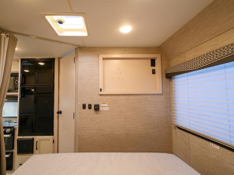 Each is built with welded sidewall cage construction and a welded tubular aluminum roof, a one-piece fiberglass cap, and includes a slick fiberglass exterior with graphics package for style and years of enjoyment on the open road. Inside, you will enjoy the well-equipped kitchen, the spacious bathroom, the sleeping accommodations and the Winegard ConnecT 2.0 WiFi/4G/TV antenna that allows you to stay connected. Choose today!