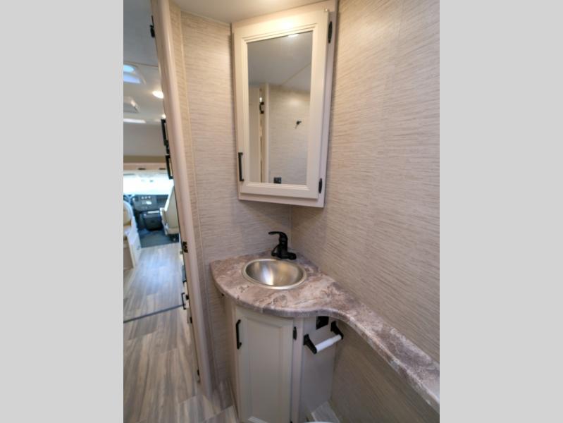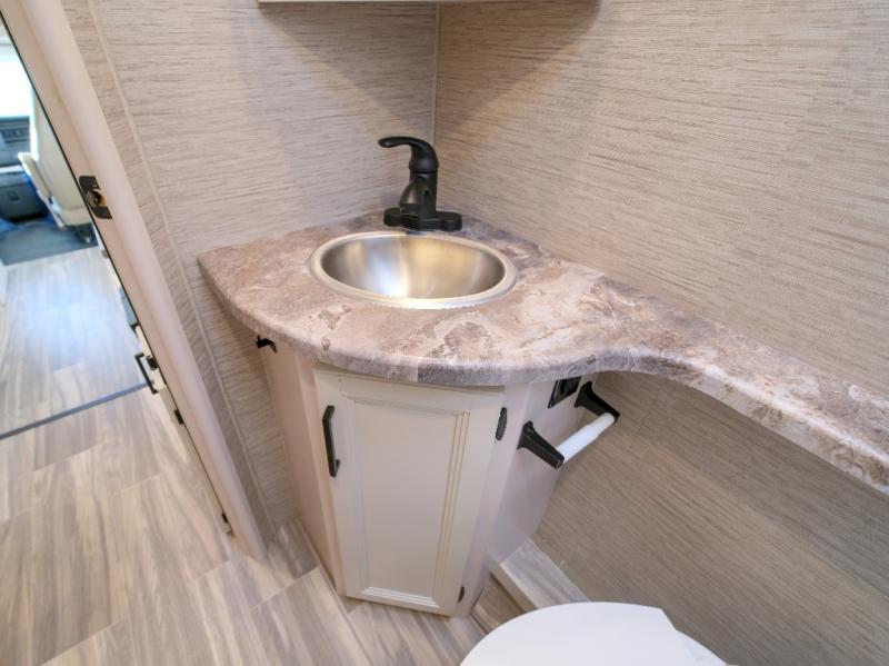 Easily head out for fun at a state park, the lake or your friend's ranch. This coach is easy to maneuver on the road or in town thanks to its compact size, yet has so many conveniences, you might not return home. The front cab over bunk is a perfect sleeping space for guests, the 40" TV allows you to watch shows when you want some inside time, and the dream dinette gives you a place to dine and relax. The cook will love all the kitchen amenities at their fingertips, plus the flip-up countertop extension is super handy. The rear corner bedroom offers a queen bed slide for more floor space, a privacy curtain and a closet, plus the full bathroom is a few steps away.