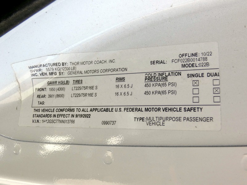 Thor Motor Coach Four Winds Class C gas motorhome 22B Chevy highlights: