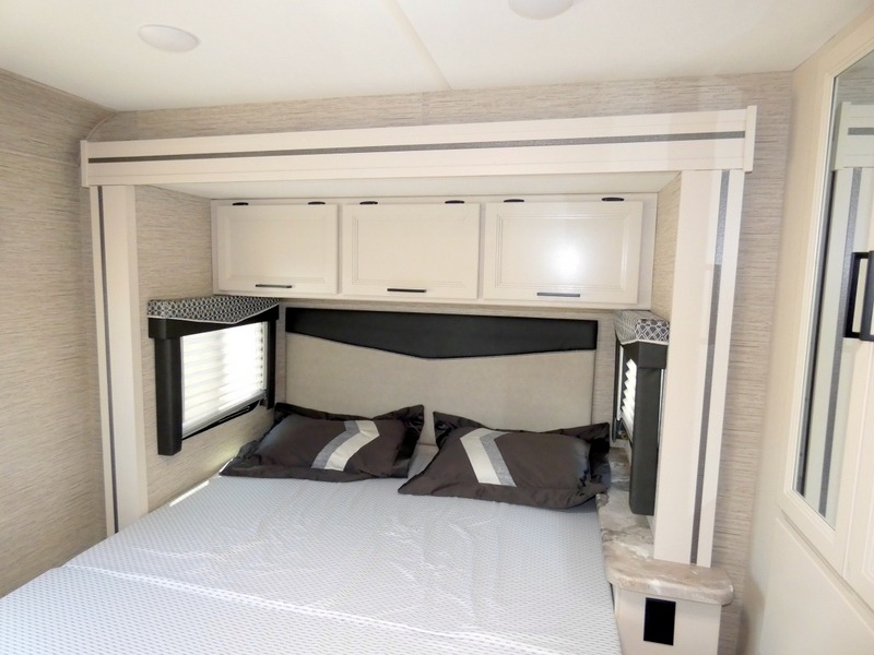 Easily head out for fun at a state park, the lake or your friend's ranch. This coach is easy to maneuver on the road or in town thanks to its compact size, yet has so many conveniences, you might not return home. The front cab over bunk is a perfect sleeping space for guests, the 40" TV allows you to watch shows when you want some inside time, and the dream dinette gives you a place to dine and relax. The cook will love all the kitchen amenities at their fingertips, plus the flip-up countertop extension is super handy. The rear corner bedroom offers a queen bed slide for more floor space, a privacy curtain and a closet, plus the full bathroom is a few steps away.