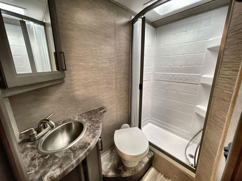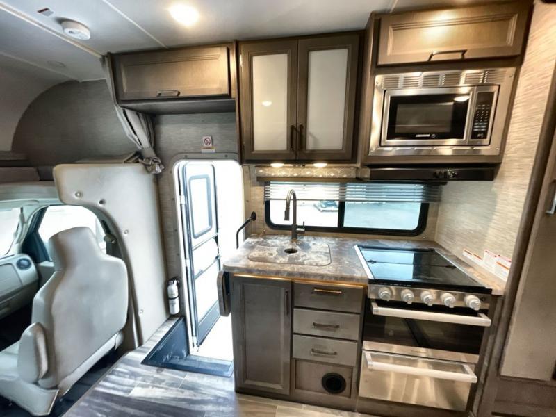With any Four Winds Class C gas motorhome, you can travel in a trustworthy Ford E-Series chassis with 350HP, or a Chevrolet chassis with 323HP if you choose that option which is available on several models. Each is built with welded sidewall cage construction and a welded tubular aluminum roof, a one-piece fiberglass cap, and includes a slick fiberglass exterior with graphics package for style and years of enjoyment on the open road. Inside, you will enjoy the well-equipped kitchen, the spacious bathroom, the sleeping accommodations and the Winegard ConnecT 2.0 WiFi/4G/TV antenna that allows you to stay connected. With several floorplans to choose from and options to add, you will surely find one that fits your family's needs or your friend's approval. Choose today!