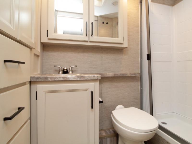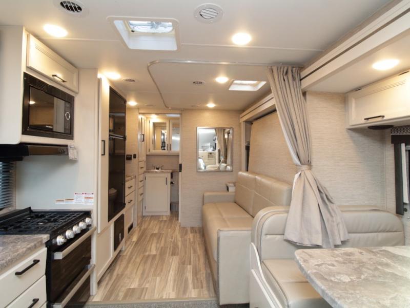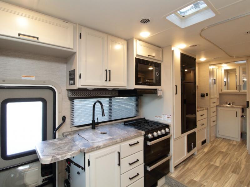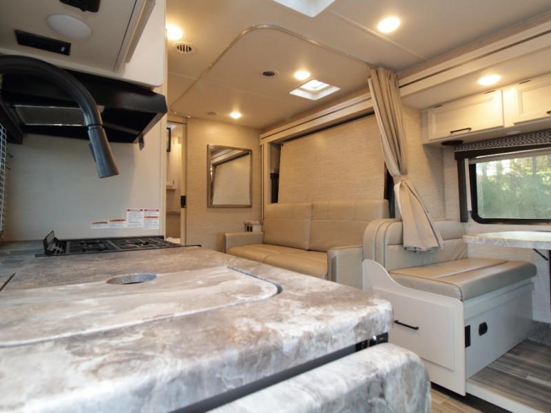 You’ll also enjoy features like a power awning with LED lighting, exterior storage compartments, and a backup camera for stress-free parking. With its compact size and well-thought-out layout, the Four Winds 25M is easy to drive and easy to love.